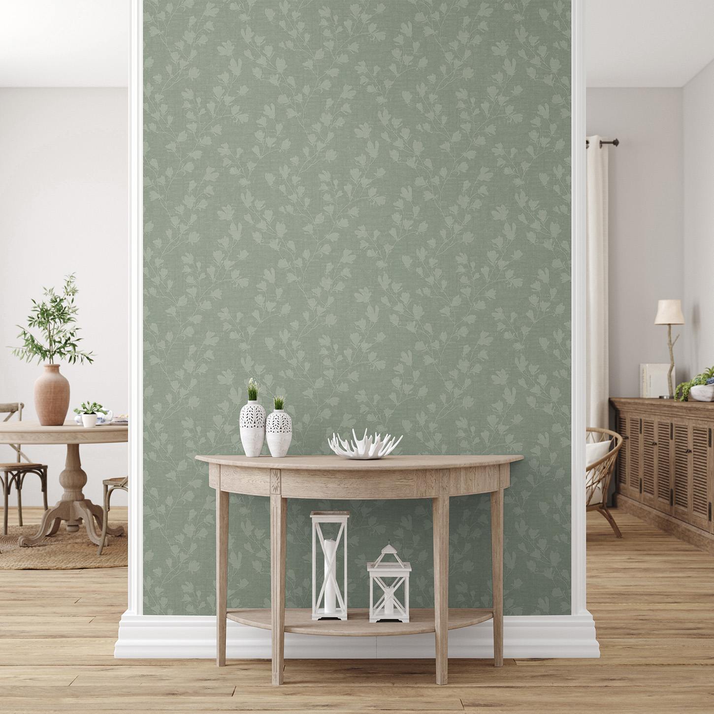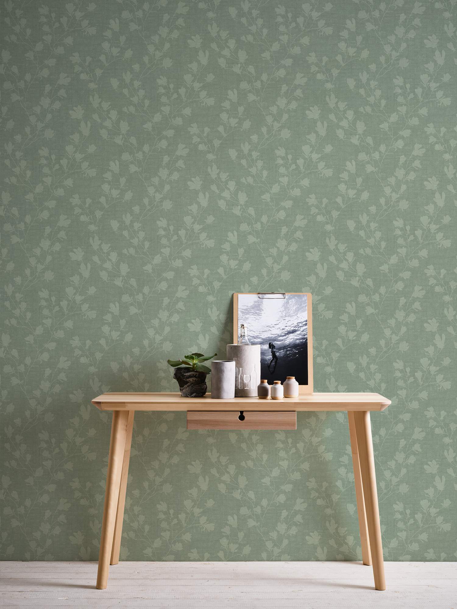 A.S. Creation | Nara | 387473 | Papel pintado no tejido | Estampado floral | 10,05 x 0,53 m | Verde