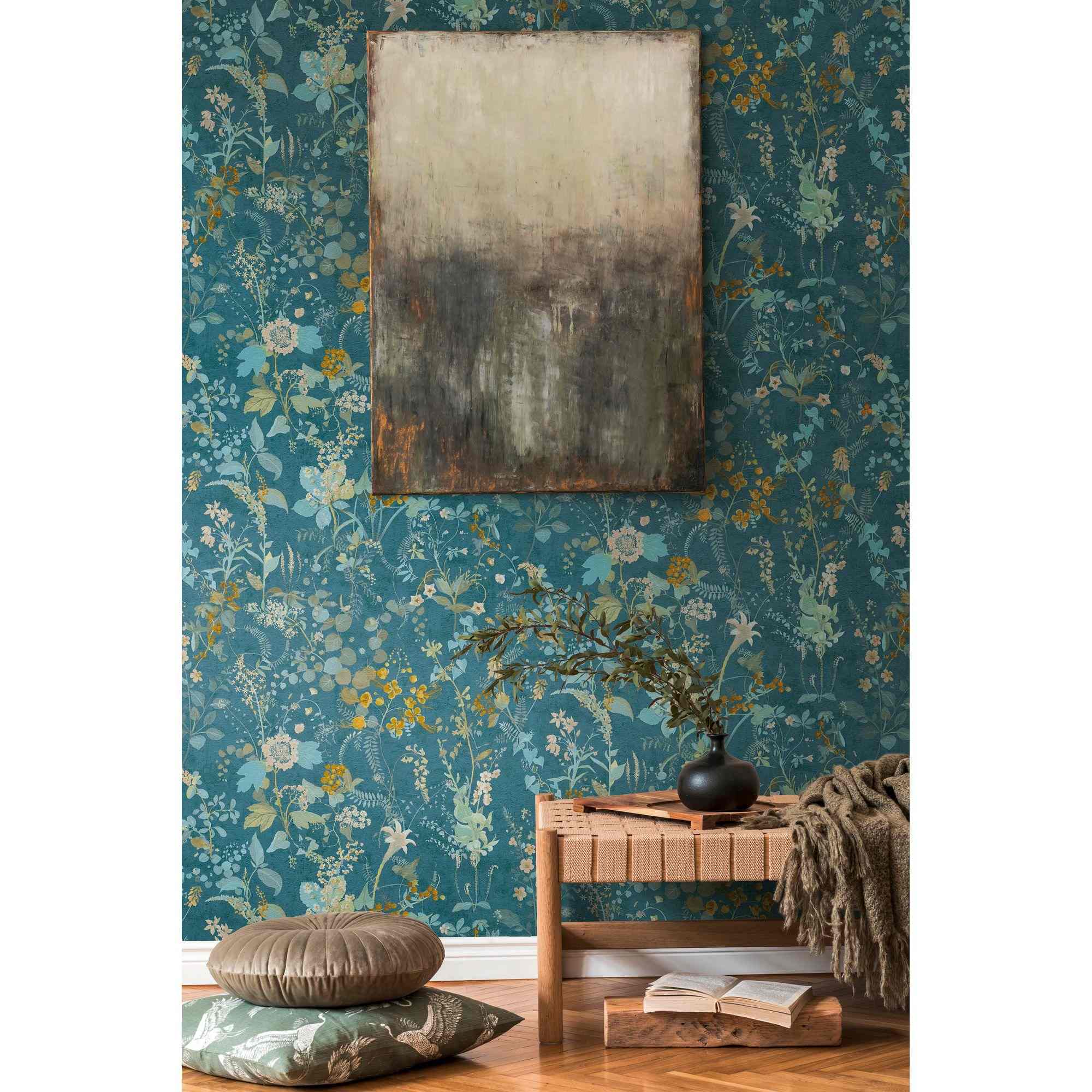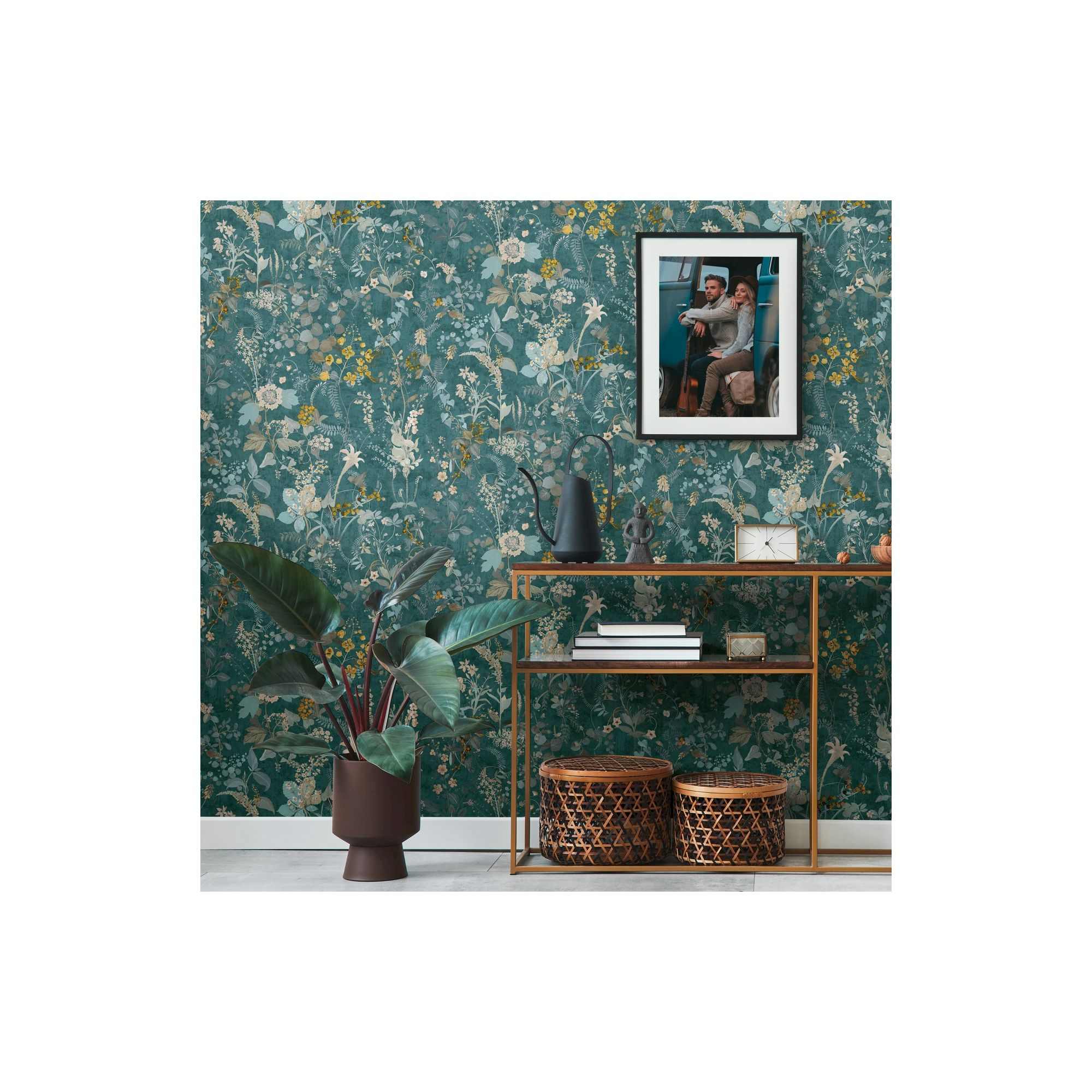 A.S. Creation The BOS 388253 Papel pintado no tejido Diseño floral 0,53 x 10,05 m Petróleo