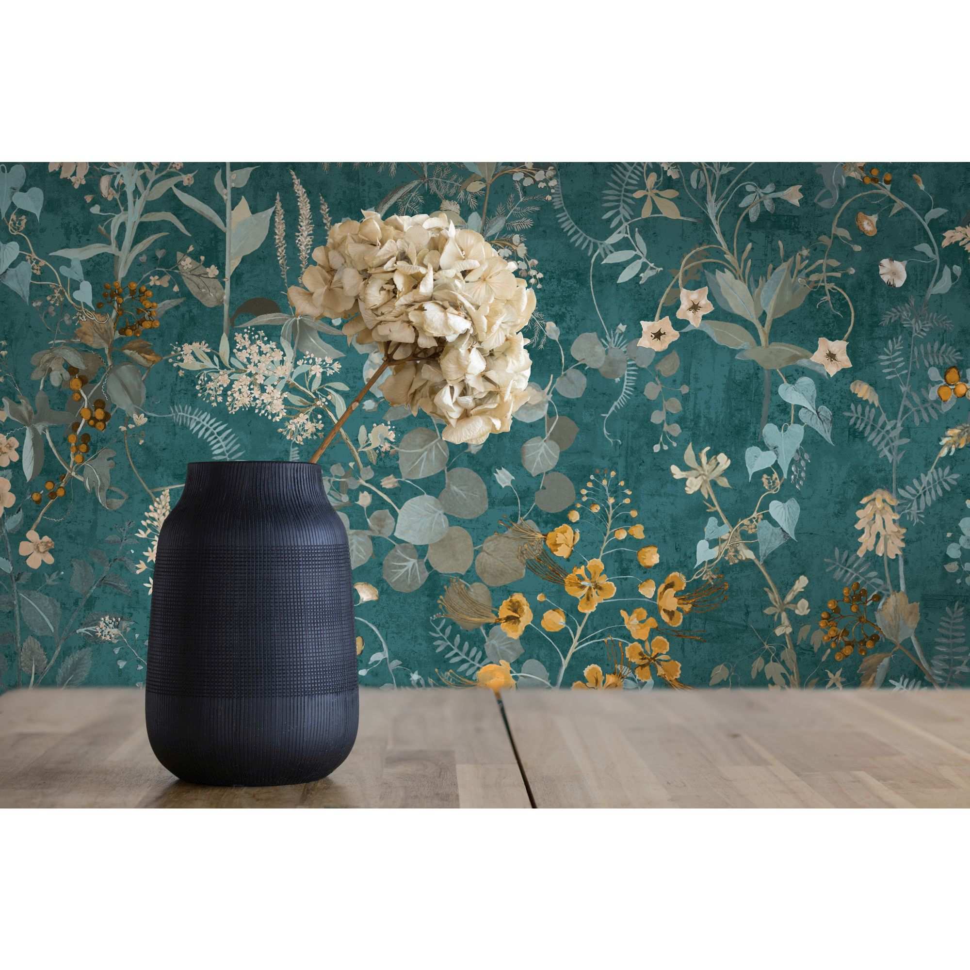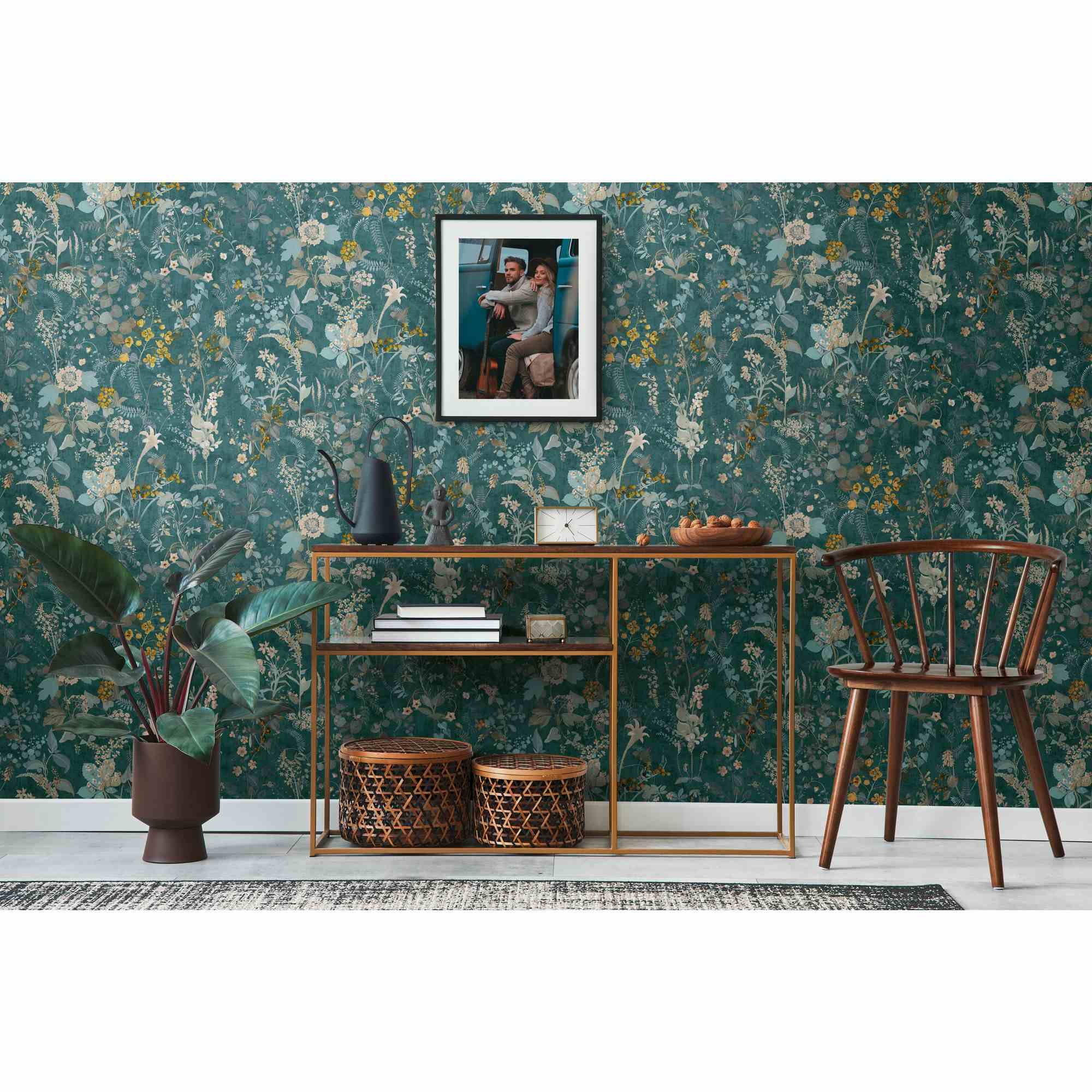 A.S. Creation | The BOS | 388253 | Papel pintado no tejido | Diseño floral | 0,53 x 10,05 m | Petróleo