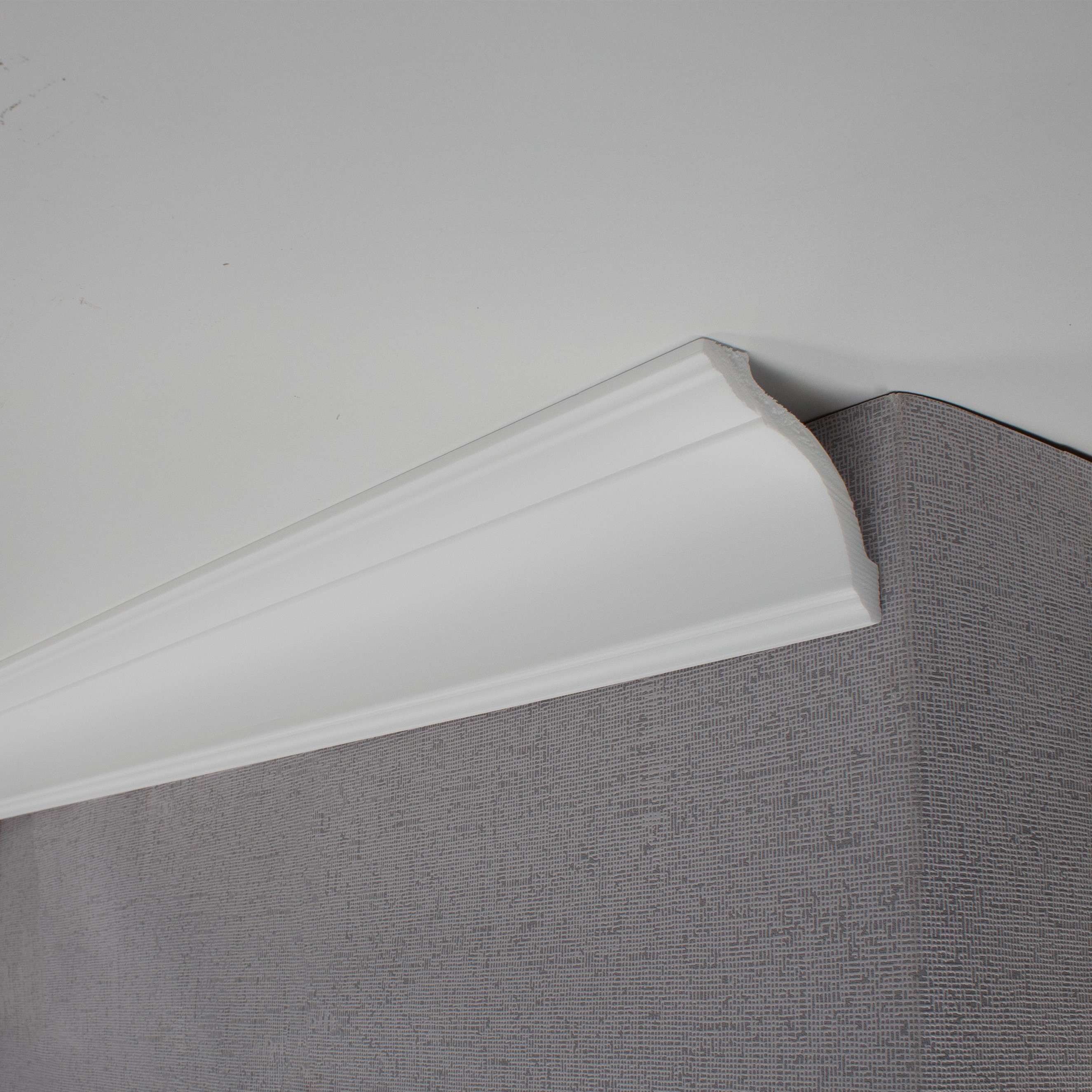 Esta moldura de techo moderna y de diseño sencillo se adapta a cualquier habitación. Su perfil atemporal y discreto garantiza una apariencia armoniosa y una transición perfecta entre la pared y el techo. La moldura se instala de forma fácil y limpia con el adhesivo adecuado. Solicite los accesorios de montaje correspondientes al mismo tiempo en la pestaña "Accesorios".