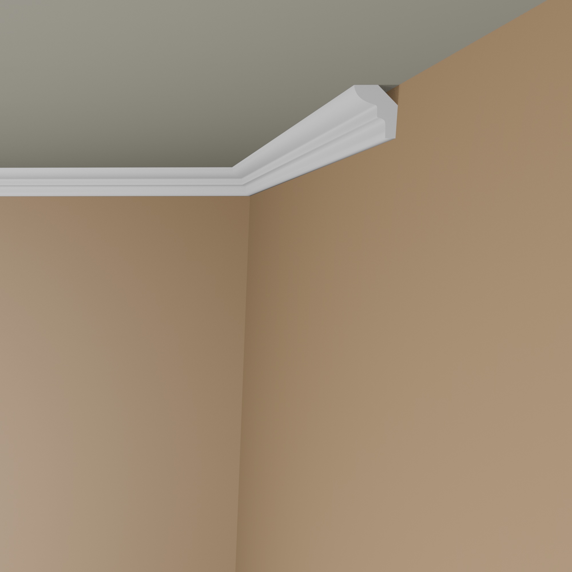 Esta elegante moldura de techo destaca especialmente gracias a su diseño de perfil elegante y discreto. Garantiza una habitación visualmente atractiva. La moldura se puede fijar de forma fácil y limpia con el adhesivo adecuado. Solicite los accesorios de montaje correspondientes al mismo tiempo en la pestaña "Accesorios".