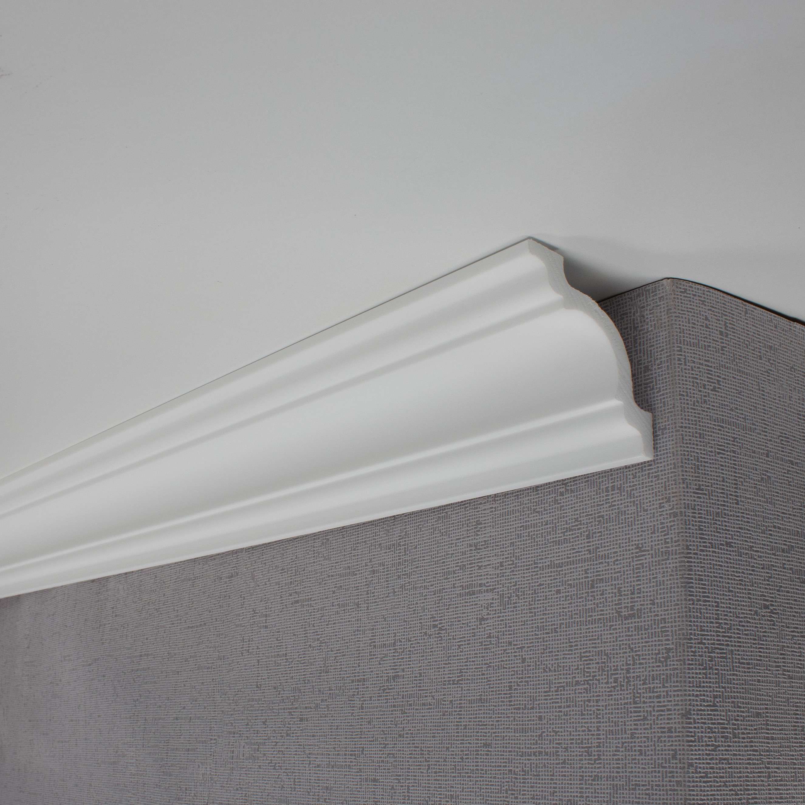Esta moldura de techo moderna y de diseño sencillo se adapta a cualquier habitación. Su perfil atemporal y discreto garantiza una apariencia armoniosa y una transición perfecta entre la pared y el techo. La moldura se instala de forma fácil y limpia con el adhesivo adecuado. Solicite los accesorios de montaje correspondientes al mismo tiempo en la pestaña "Accesorios".