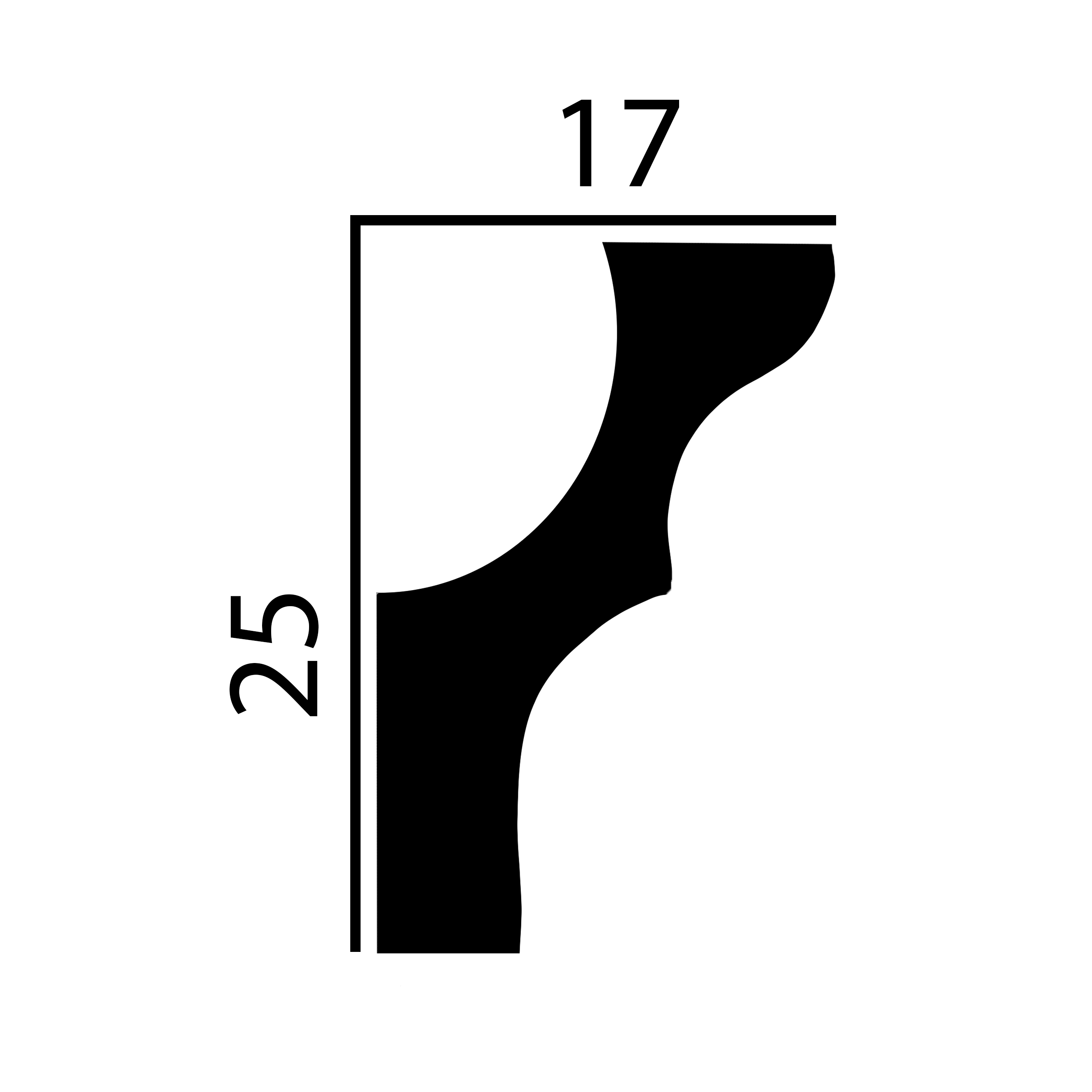 Die Maße der Stuckleiste sind im Datenblatt angegeben.
