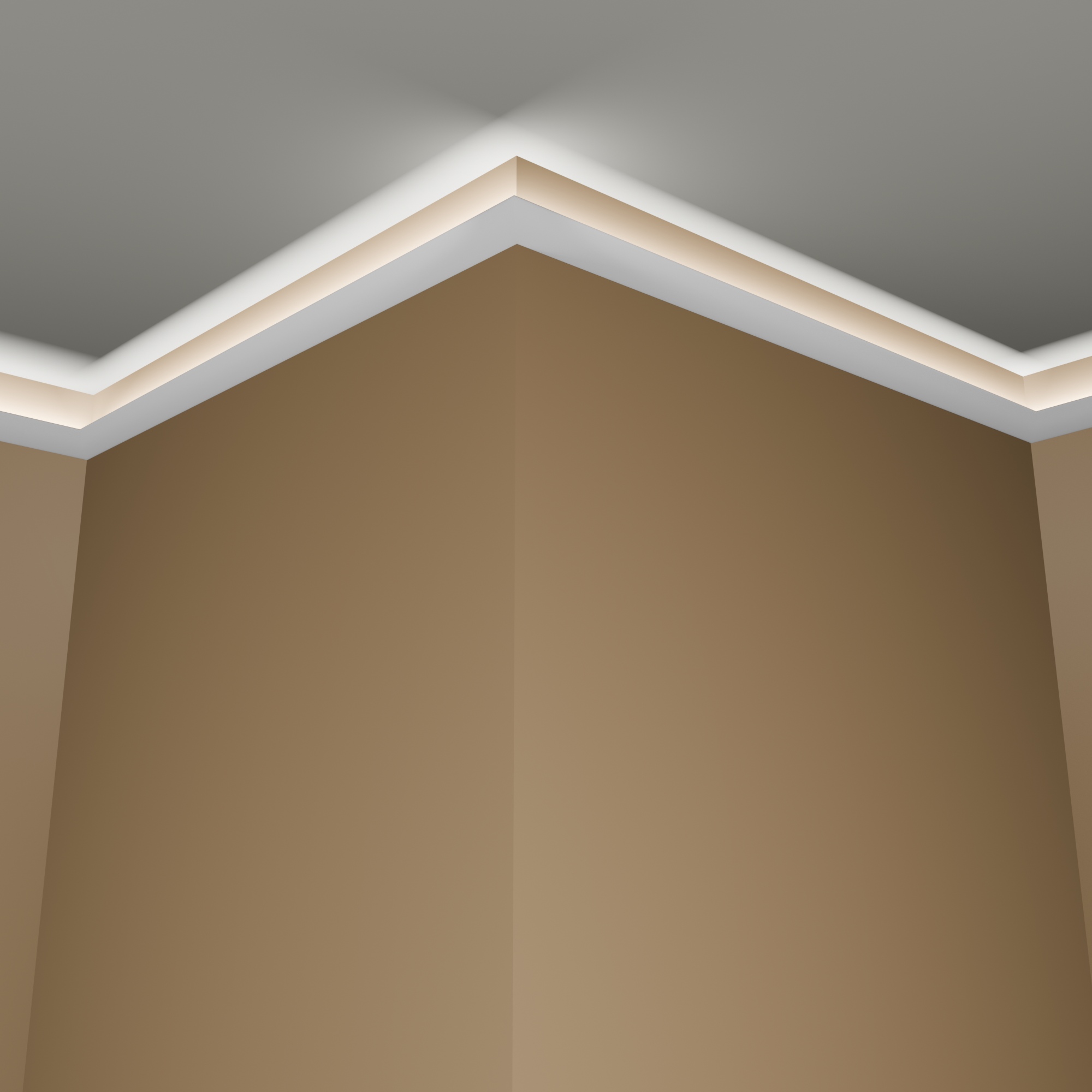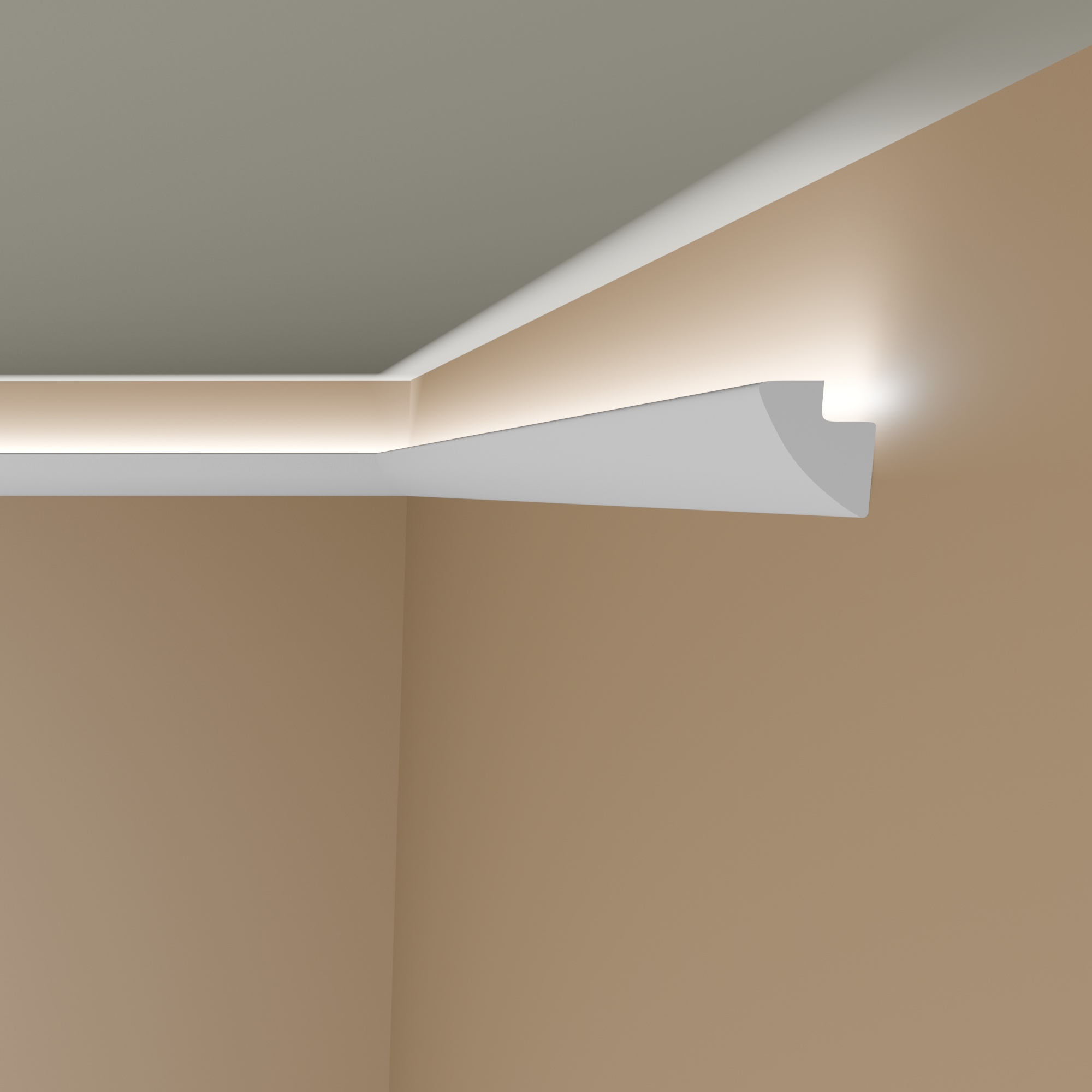 Esta moldura de techo moderna y de diseño sencillo se adapta a cualquier habitación. Su perfil atemporal y discreto garantiza una apariencia armoniosa y una transición perfecta entre la pared y el techo. La moldura se instala de forma fácil y limpia con el adhesivo adecuado.