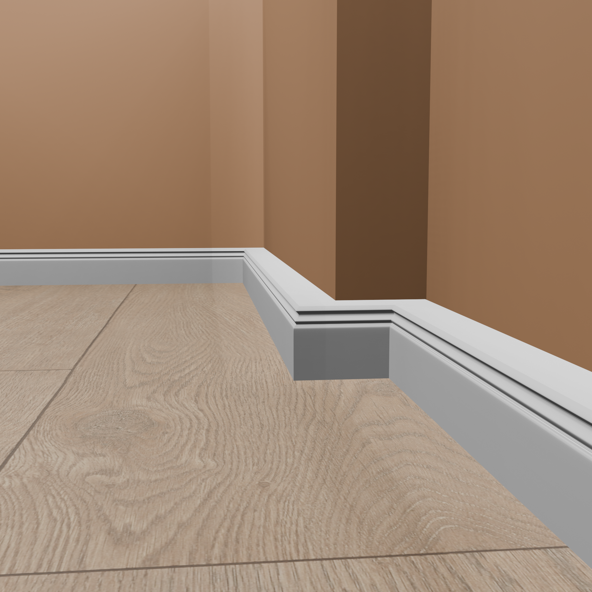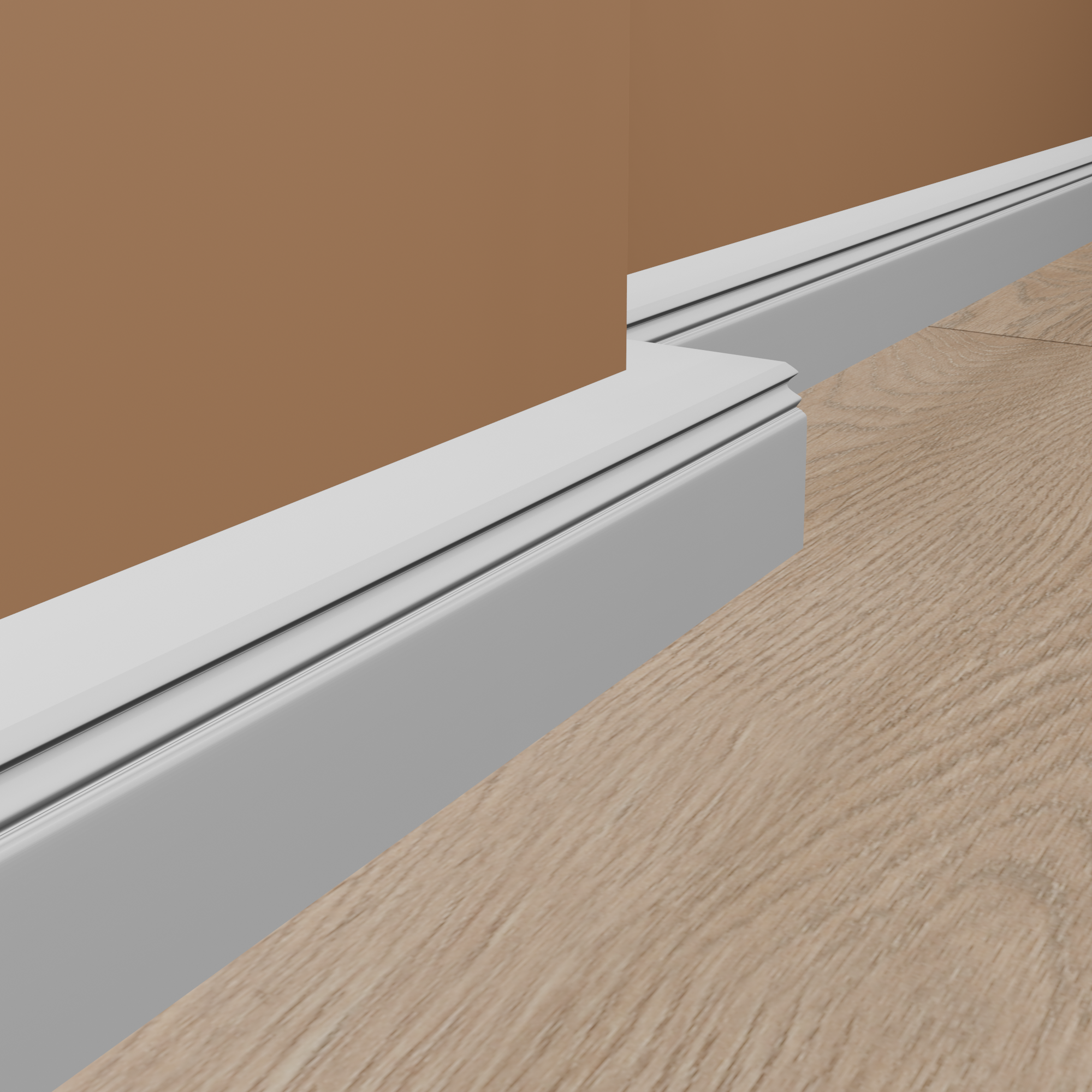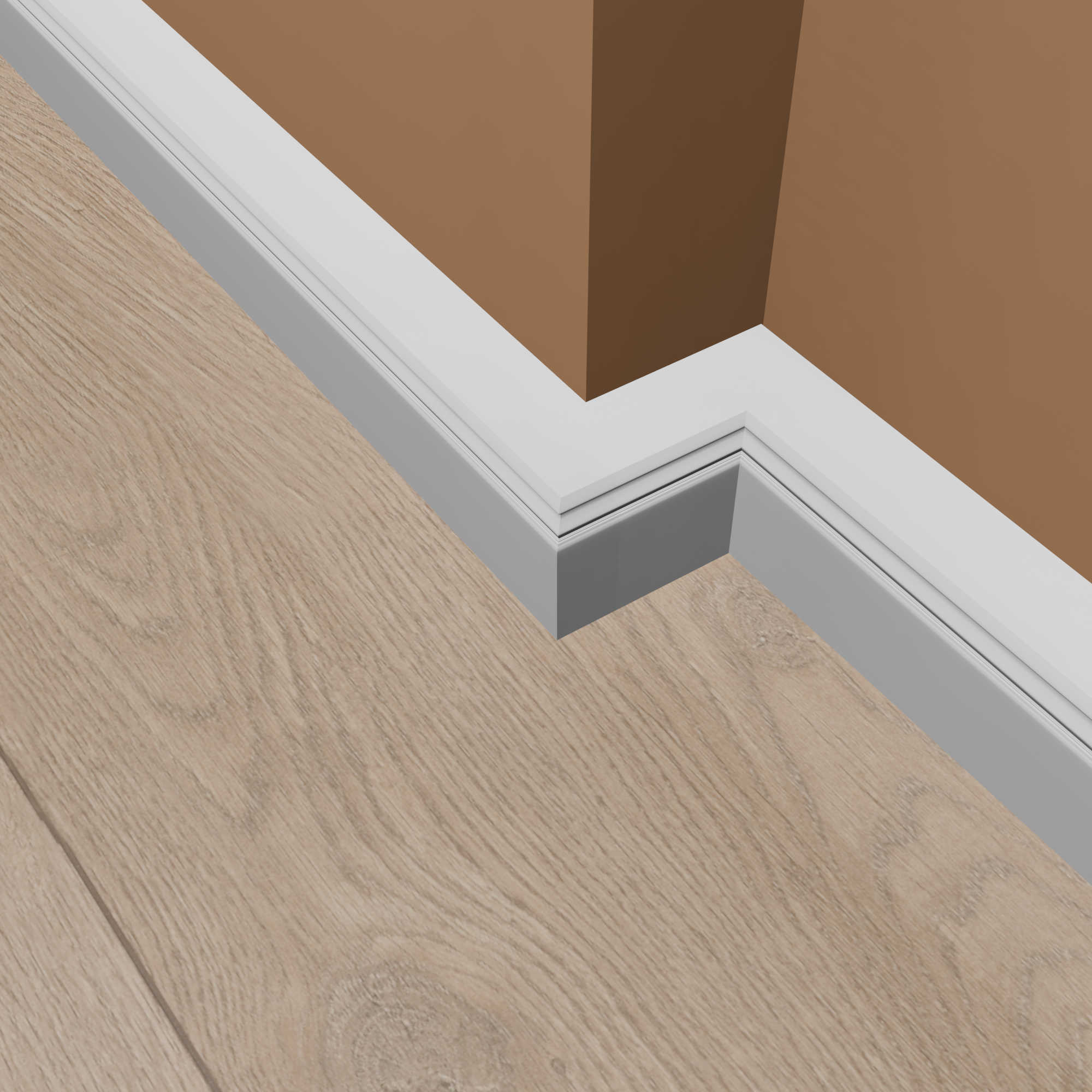Consejo para ángulos y esquinas: Ahorre tiempo y evite la tediosa tarea de cortar esquinas a inglete. Ofrecemos ángulos precortados para muchos de nuestros rodapiés. Recibirá un ángulo interior o exterior que solo tendrá que cortar por la mitad. En los demás casos, puede utilizar cantoneras universales de madera de diferentes grosores para un acabado perfecto del rodapié. Consulte la pestaña "Accesorios" para obtener más información.