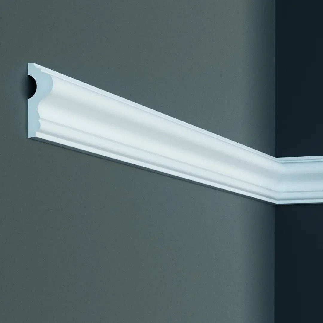 Esta elegante moldura destaca por su perfil discreto y estilizado, que garantiza una estancia visualmente atractiva. La cornisa se instala de forma fácil y limpia con el adhesivo adecuado.