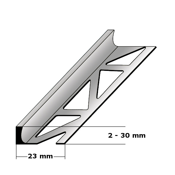- DIMENSIONES: El perfil de junta de dilatación mide 23 x 10 x 2500 mm.
