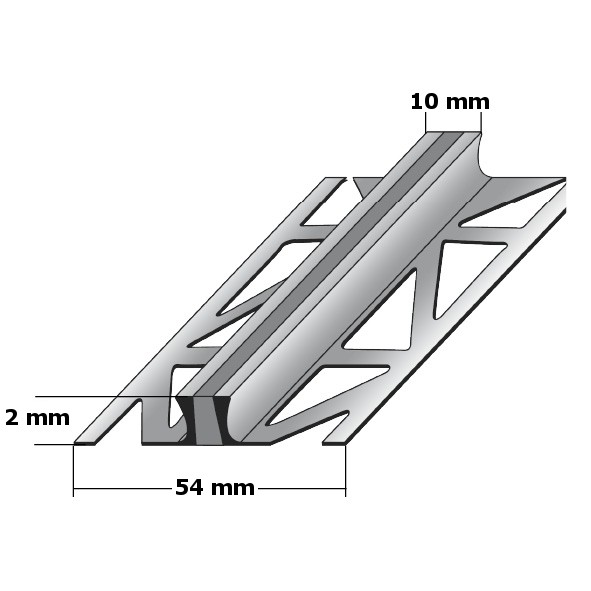 - DIMENSIONES: El perfil de junta de dilatación tiene unas dimensiones de 54 x 2 x 2500 mm.