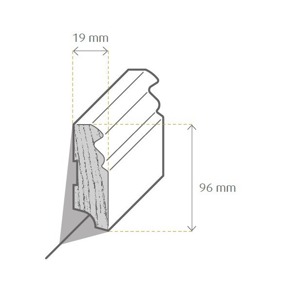 Encontrará más información en nuestras Instrucciones de instalación de zócalos. Encontrará los accesorios de montaje adecuados en la pestaña "Accesorios".Consejo para ángulos y esquinas: Ahorre tiempo y evite tener que cortar las esquinas a inglete. Ofrecemos ángulos precortados para muchas de nuestras molduras. Recibirá un ángulo interior o exterior que solo tendrá que cortar por la mitad. En los demás casos, puede usar cantoneras de madera universales de diferentes grosores para un acabado perfecto. Consulte la pestaña "Accesorios" para obtener más información.