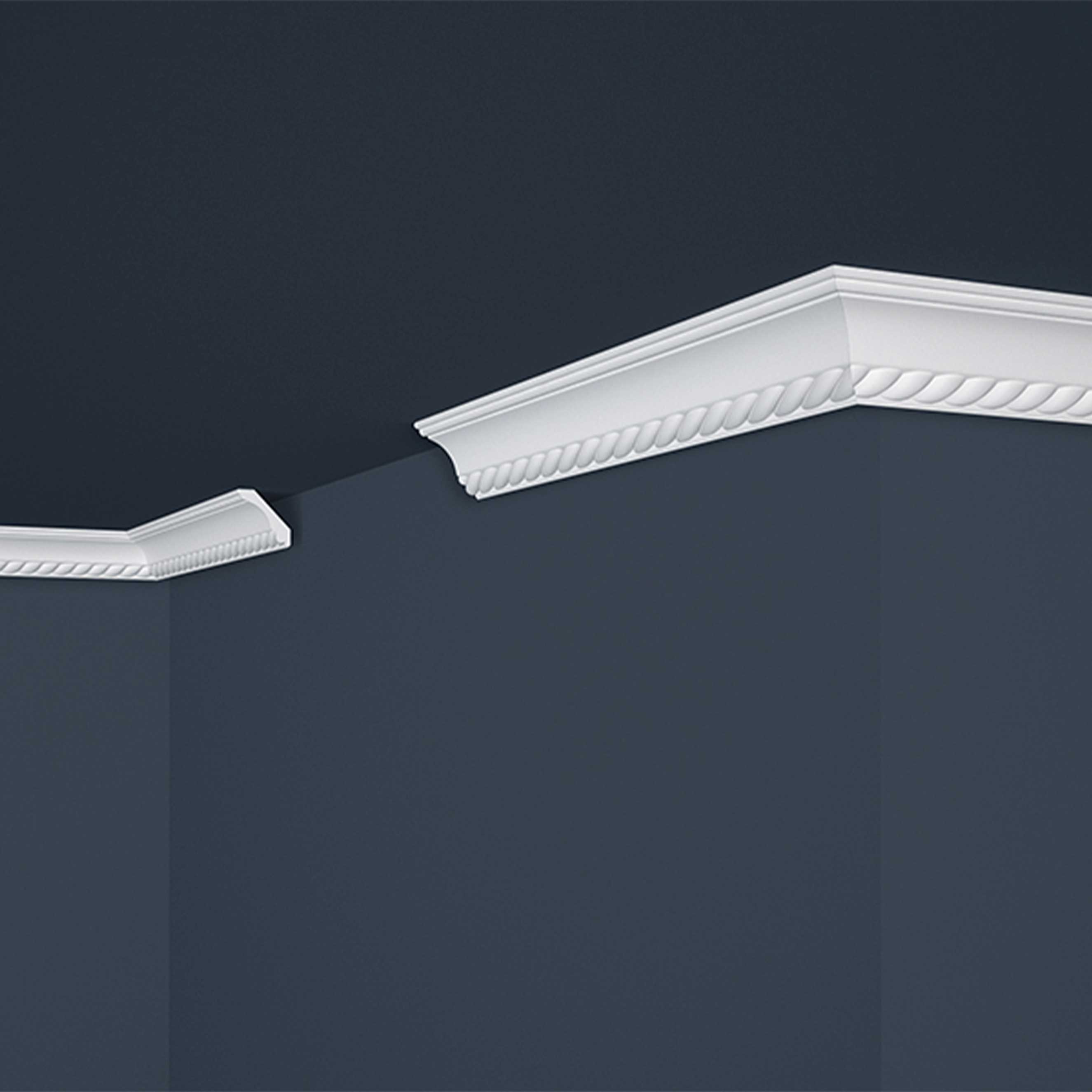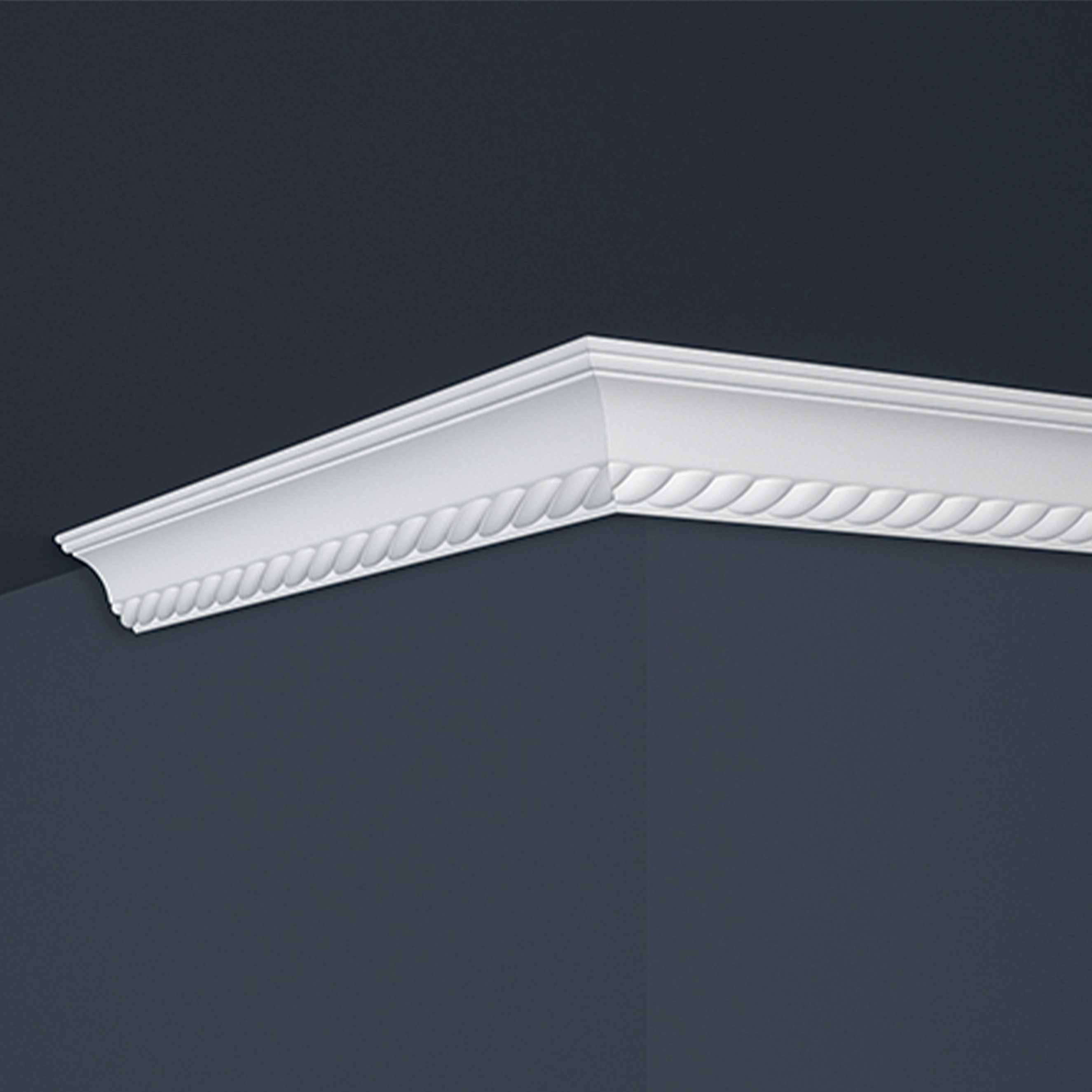 Esta elegante moldura de techo destaca especialmente gracias a su diseño de perfil estilizado y discreto. Esto garantiza una estancia visualmente atractiva. La moldura de cornisa se puede instalar de forma fácil y limpia con el adhesivo adecuado.