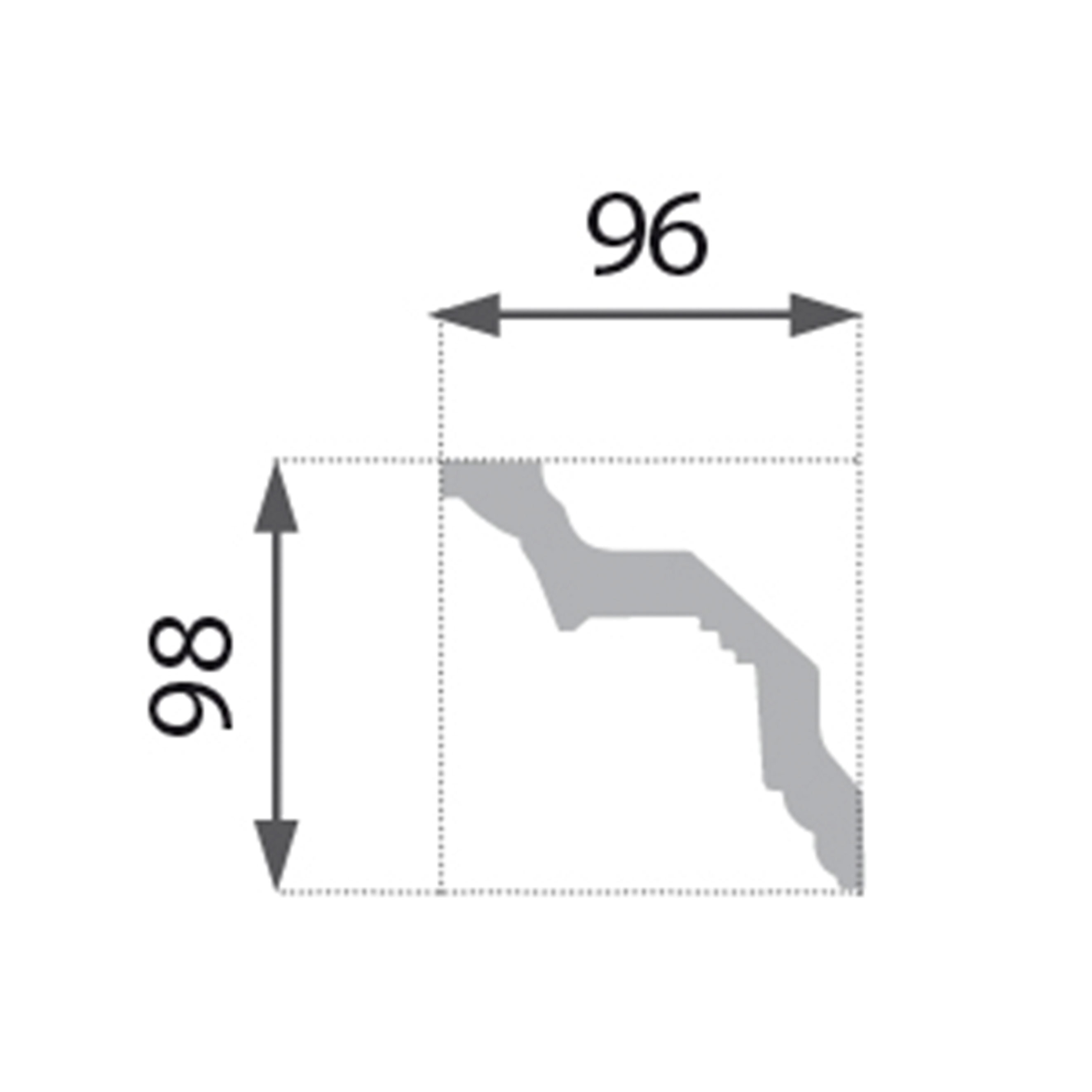 Die Maße der Stuckleiste sind im Datenblatt angegeben.