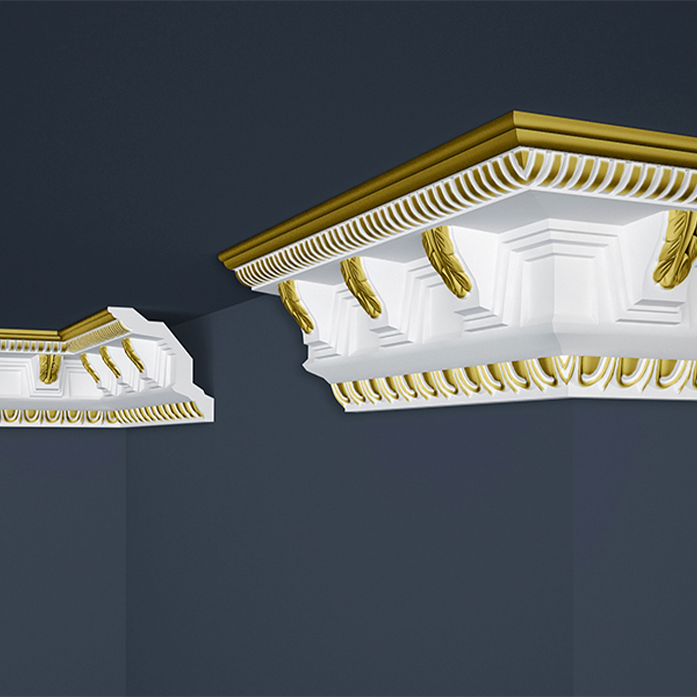 Solicite los accesorios de montaje correspondientes en la pestaña "Accesorios".Aquí encontrará nuestras instrucciones de montaje para molduras de cornisa.