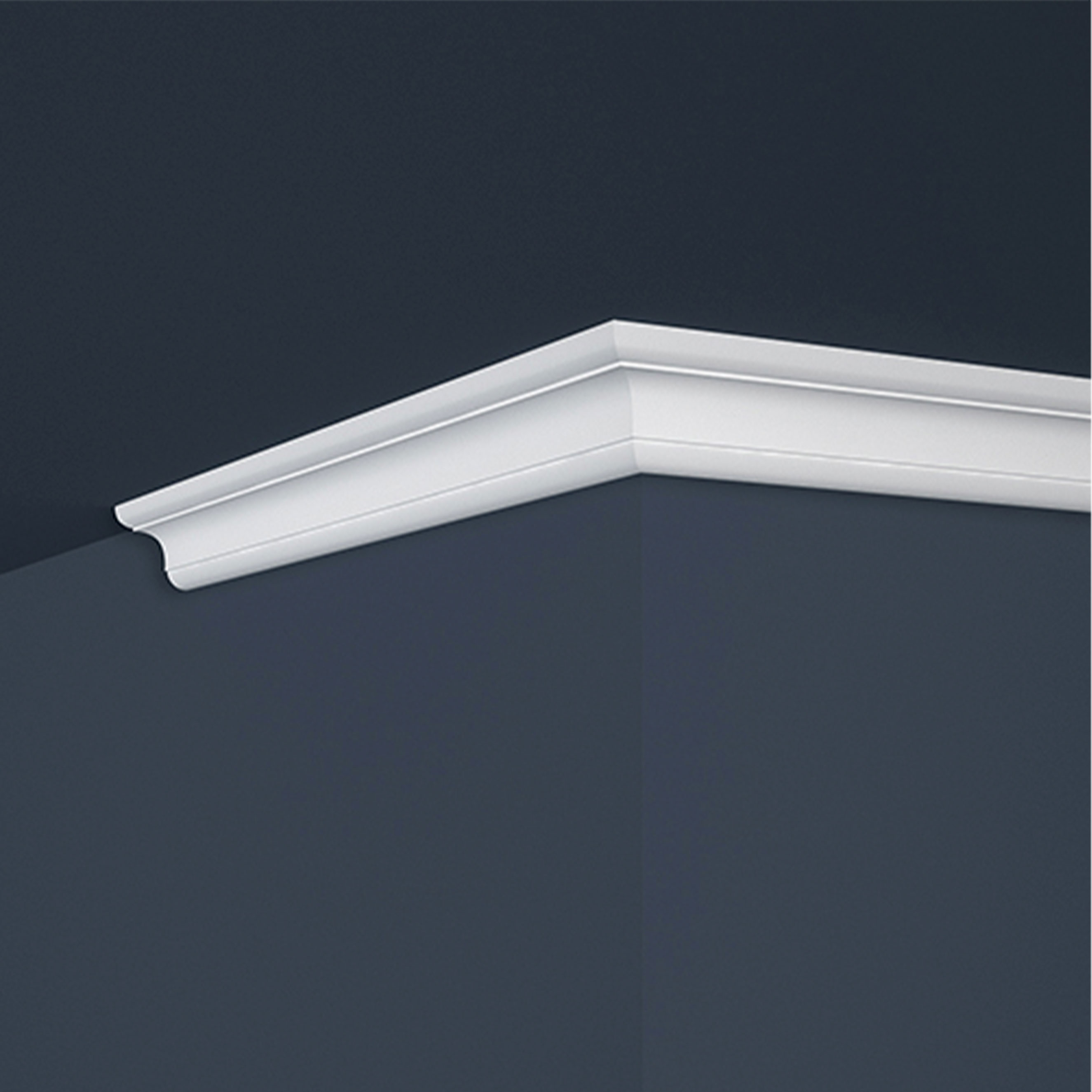 Esta elegante moldura de techo destaca especialmente gracias a su diseño de perfil estilizado y discreto. Esto garantiza una estancia visualmente atractiva. La moldura de cornisa se puede instalar de forma fácil y limpia con el adhesivo adecuado.