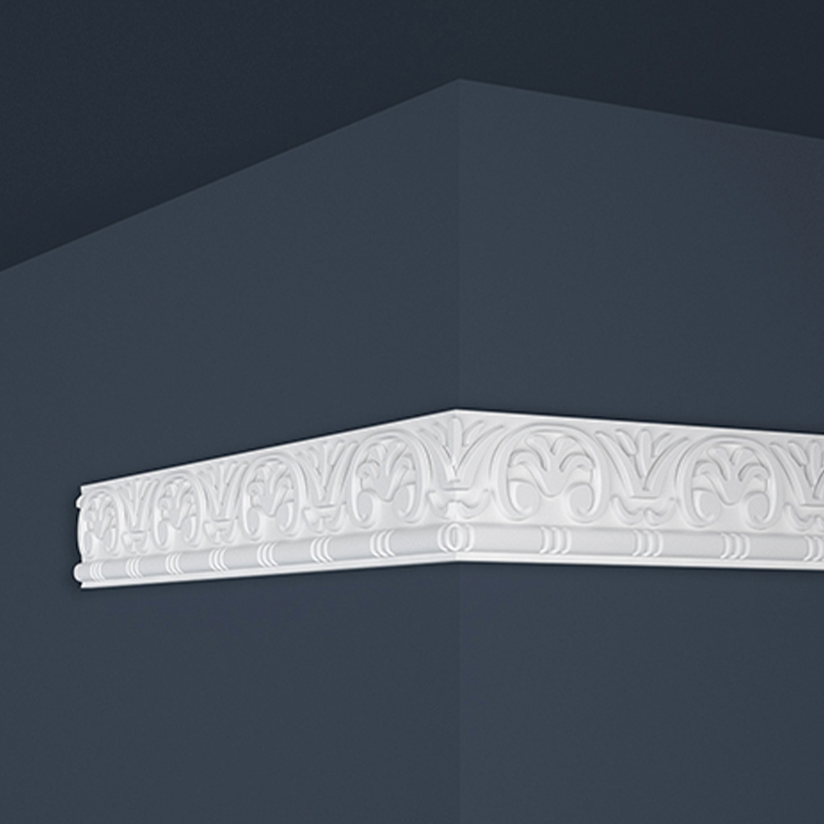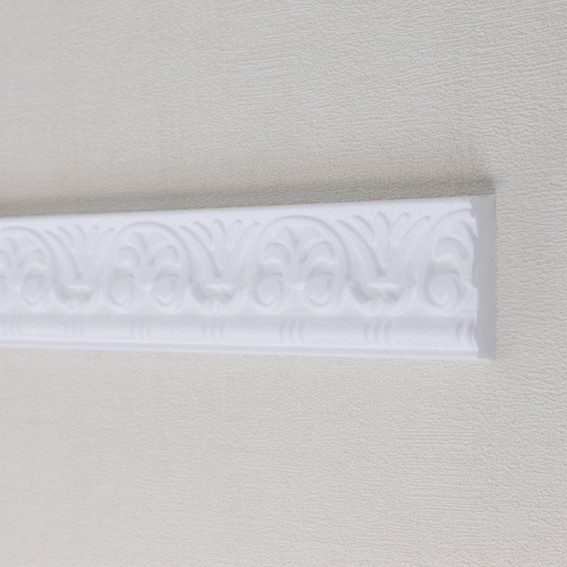 Esta elegante moldura decorativa destaca especialmente gracias a su perfil estilizado y discreto. Esto garantiza una estancia visualmente atractiva. La moldura se puede instalar de forma fácil y limpia con el adhesivo de montaje adecuado.