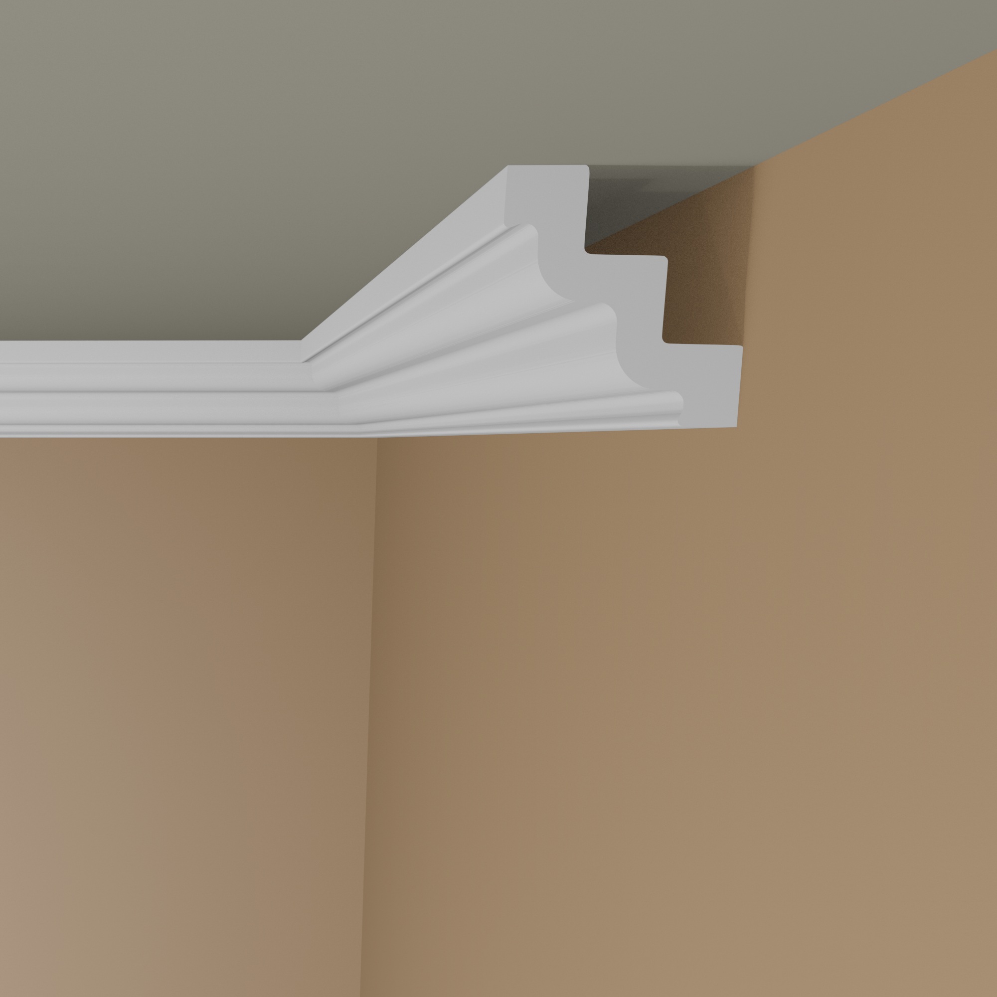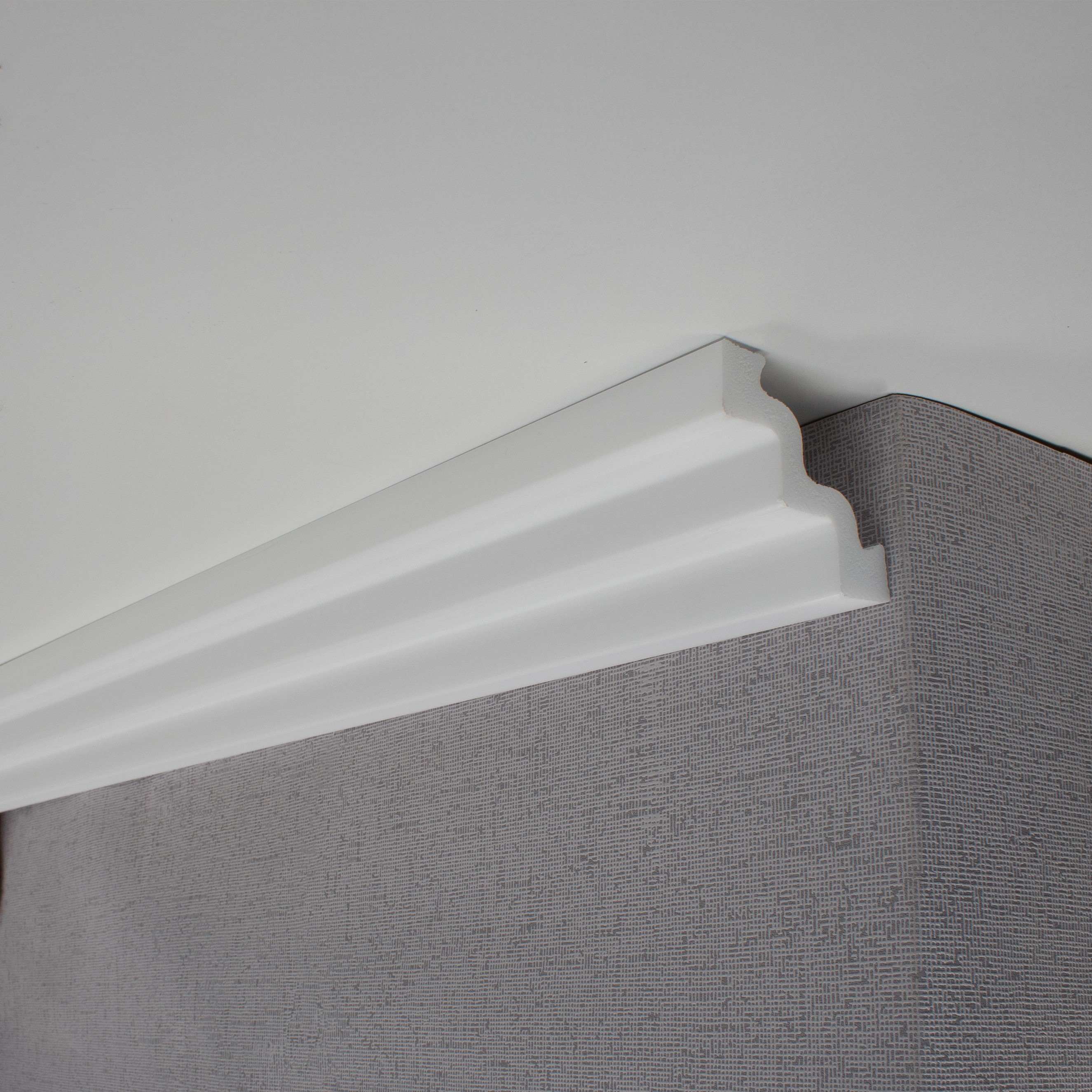Esta moldura de techo moderna y de diseño sencillo se adapta a cualquier habitación. Su perfil atemporal y discreto garantiza una apariencia armoniosa y una transición perfecta entre la pared y el techo. La moldura se instala de forma fácil y limpia con el adhesivo adecuado.