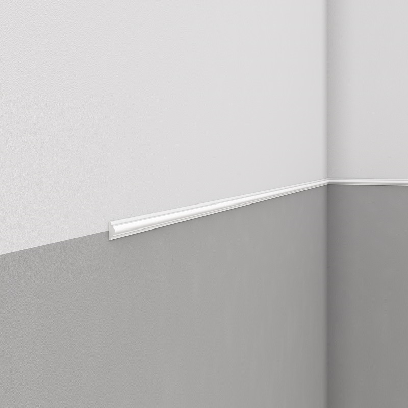 Esta elegante moldura decorativa destaca especialmente gracias a su perfil estilizado y discreto. Garantiza una estancia visualmente atractiva. La moldura se puede instalar de forma fácil y limpia con el adhesivo adecuado. Solicite los accesorios de montaje correspondientes al mismo tiempo en la pestaña "Accesorios".