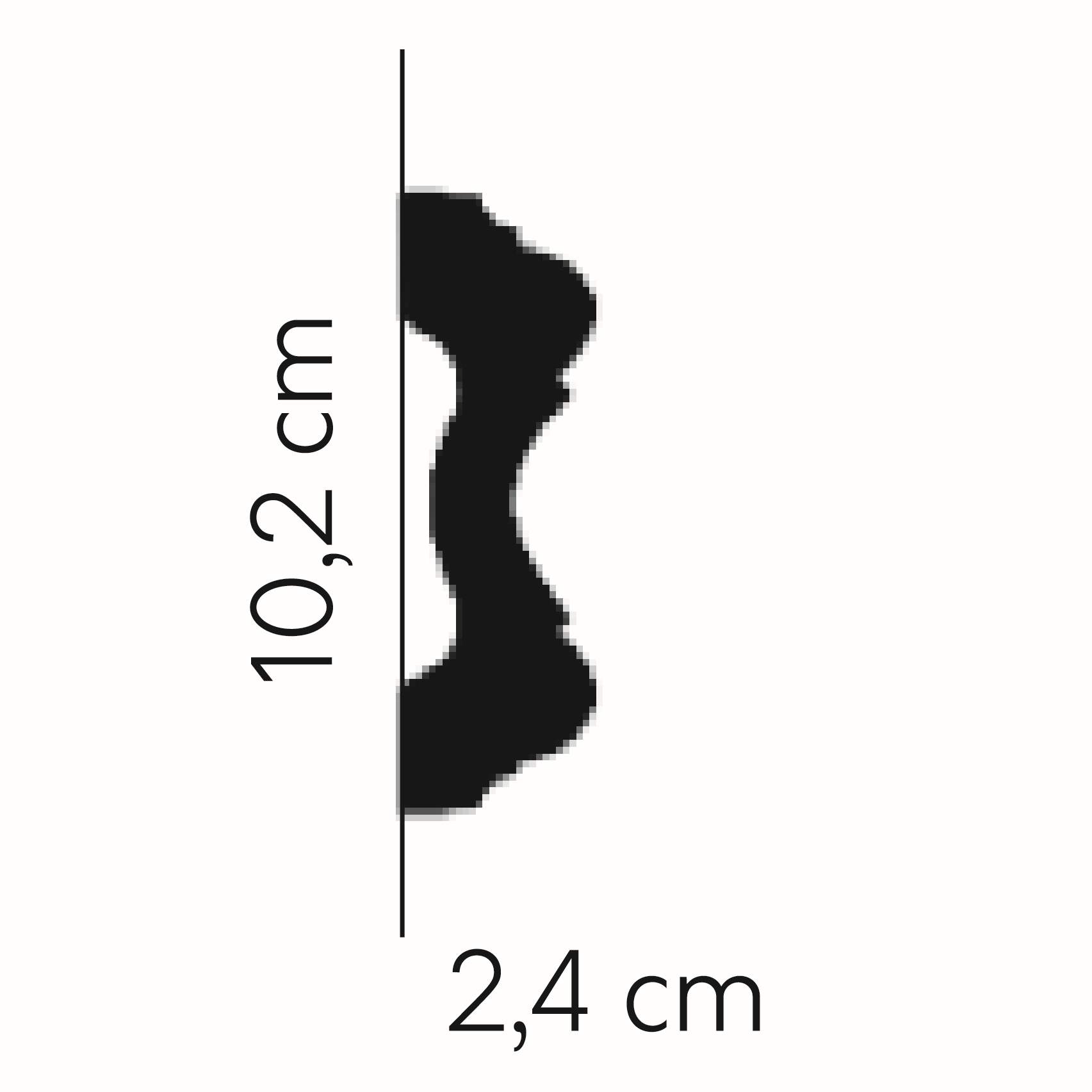 - TAMAÑO: La moldura de cornisa con dimensiones de 24 x 102 x 2000 mm crea una transición limpia en la pared o el techo.