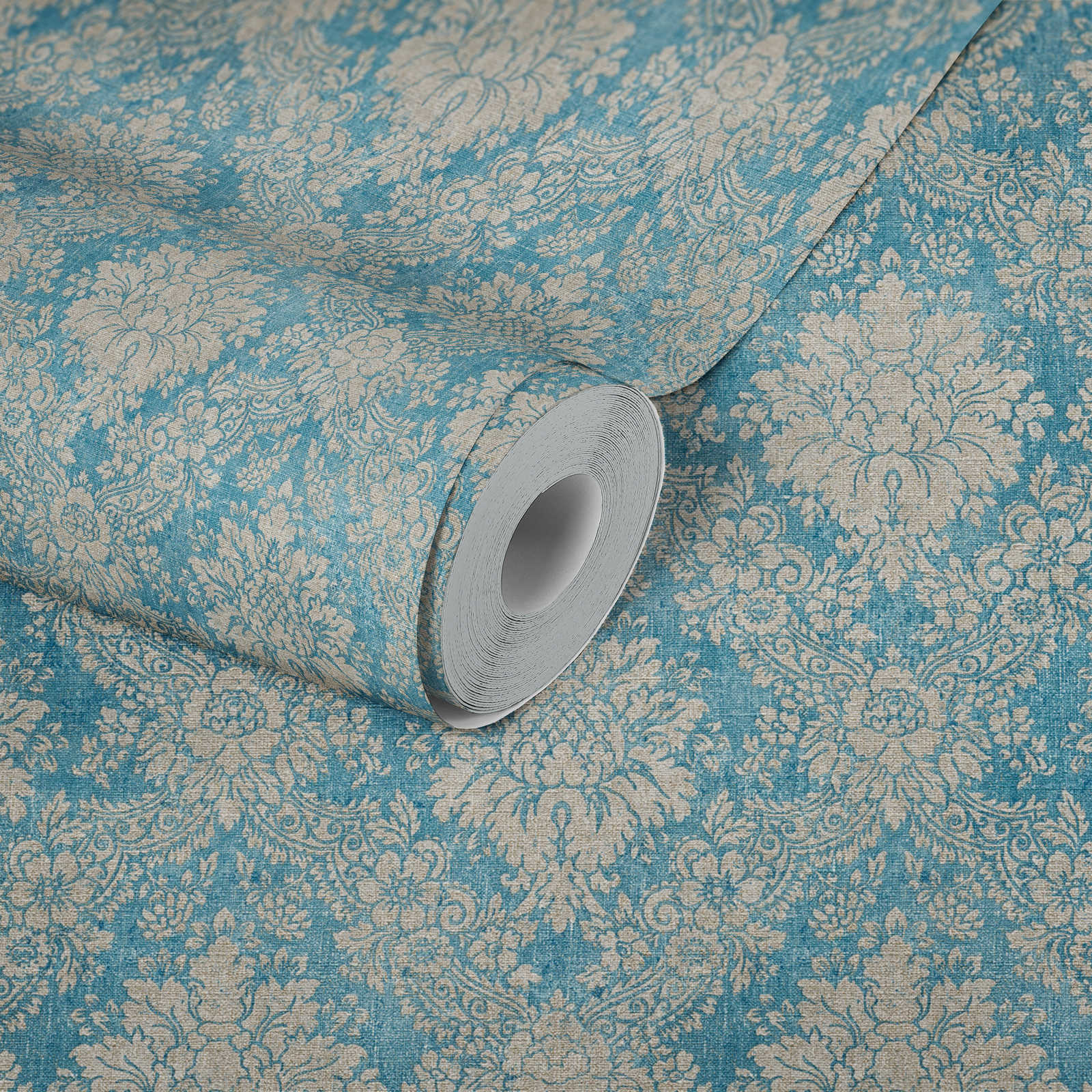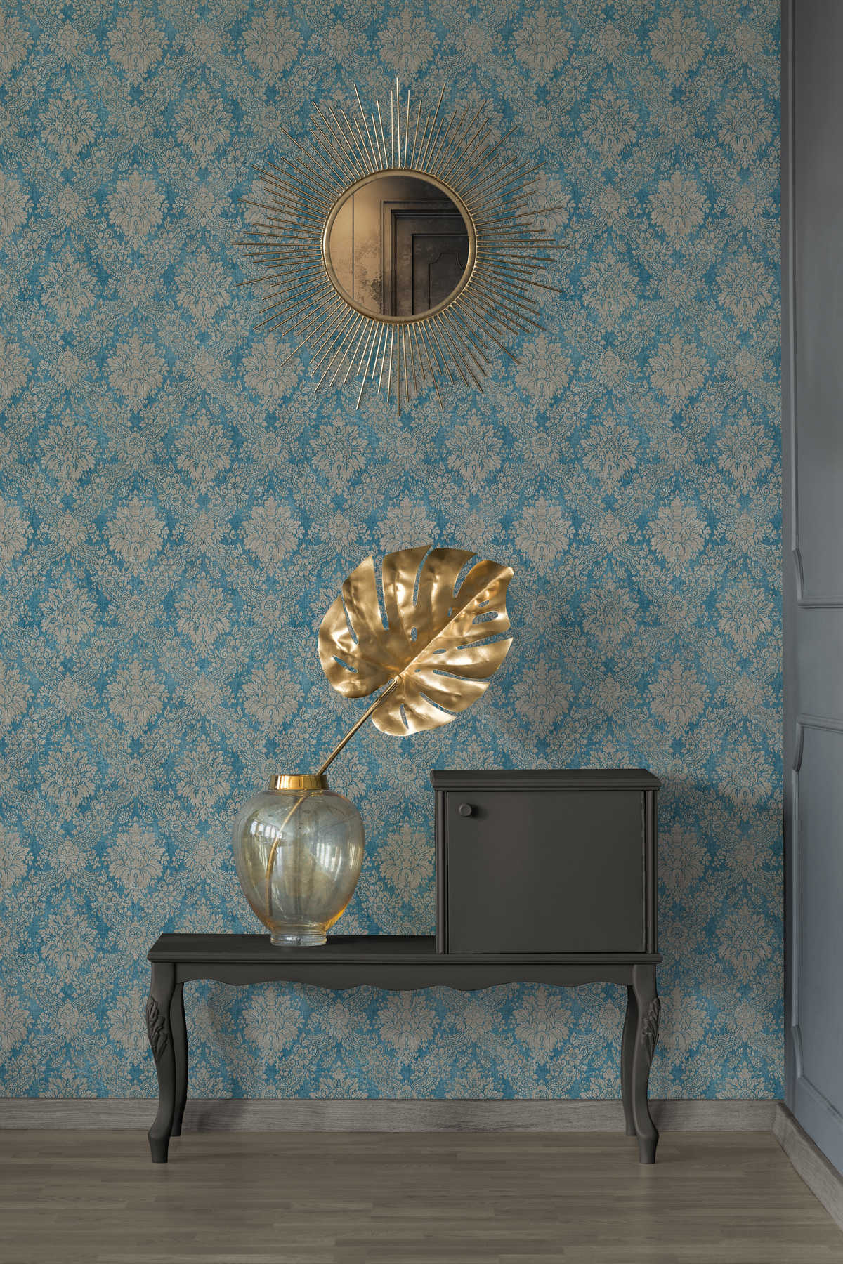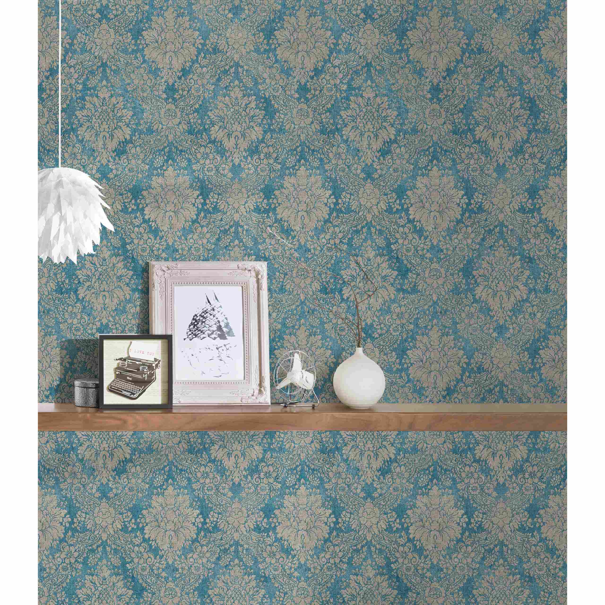 Papel pintado no tejido 336075 con motivos estampados en azul, Jardín Secreto, A.S. Creation