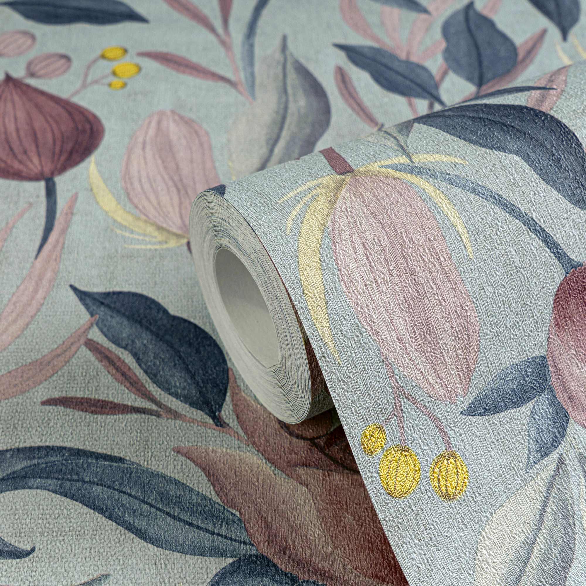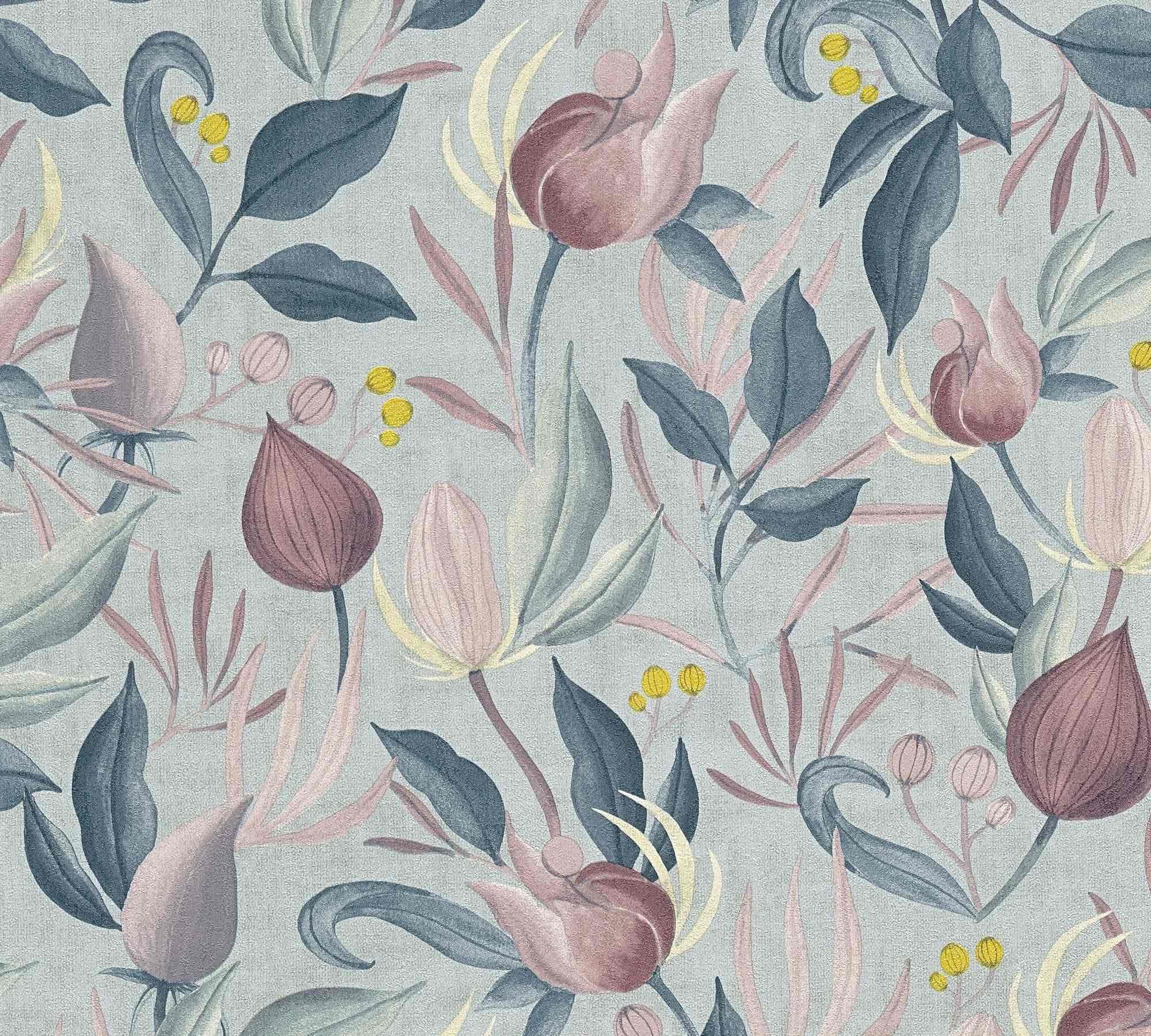 Papel pintado no tejido 790621 hojas florales azules CosmoLiving de Cosmopolitan A.S. Creation