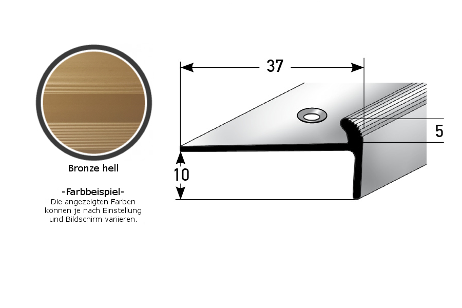 - MATERIAL: Fabricado en aluminio de alta calidad, que destaca por su robustez y durabilidad. Resisten el desgaste, los arañazos y la humedad, lo que los hace ideales para zonas de alto tránsito. SUPERFICIE: La superficie acanalada garantiza un ascenso seguro por las escaleras. COLOR: Bronce claro. Gracias a su aspecto sencillo y moderno, este color armoniza con cualquier estilo de decoración. DISEÑO DE PERFIL ATRACTIVO: Sencillo, versátil y moderno. Este zócalo es atemporal y un verdadero atractivo en cualquier escalera. PROTECCIÓN CONTRA EL DESGASTE: Los perfiles de borde para escaleras ofrecen una protección eficaz para los bordes de sus escaleras. Evitan marcas de desgaste y arañazos que pueden producirse con el uso habitual. APLICACIÓN: Nuestros perfiles de esquina son aptos no solo para su uso en viviendas, sino también en edificios públicos, locales comerciales y complejos de oficinas. Se pueden utilizar en escalones de madera, hormigón o baldosas y se integran perfectamente en cualquier ambiente. SEGURIDAD Y COMODIDAD: Con el perfil de borde para escaleras, puede evitar tropiezos. La superficie antideslizante proporciona una superficie segura para caminar, incluso en condiciones húmedas o resbaladizas. INCLUIDO EN LA ENTREGA: Se incluyen los tornillos y tacos necesarios. INSTALACIÓN SENCILLA: La instalación de nuestros perfiles angulares es rápida y sencilla. No se requieren conocimientos técnicos complejos ni herramientas especiales. Los perfiles metálicos se pueden fijar fácilmente atornillando o pegando. Asegúrese de que la superficie esté nivelada y sea resistente. Para los perfiles autoadhesivos, la superficie también debe estar seca, libre de polvo y grasa para lograr una adhesión óptima. En zonas de mucho tránsito, el perfil debe atornillarse y, además, pegarse. Para aumentar la capacidad de carga, recomendamos rellenar el espacio entre el perfil metálico y el revestimiento del suelo con un material adhesivo. Aquí encontrará nuestras instrucciones de instalación para perfiles de suelo.
