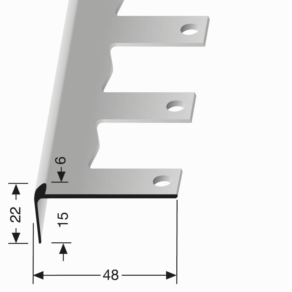 Perfil de borde de escalera 22 x 48 x 2500 mm, perfil angular de aluminio, varias versiones, Küberit
