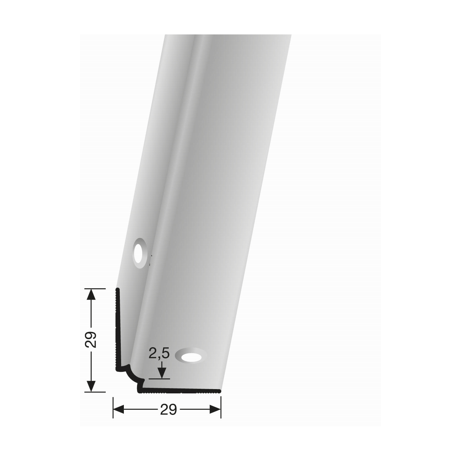 Perfil de borde de escalera 29 x 29 x 2500 mm, aluminio, ángulo interior de escalera, liso, avellanado, perforado, Küberit
