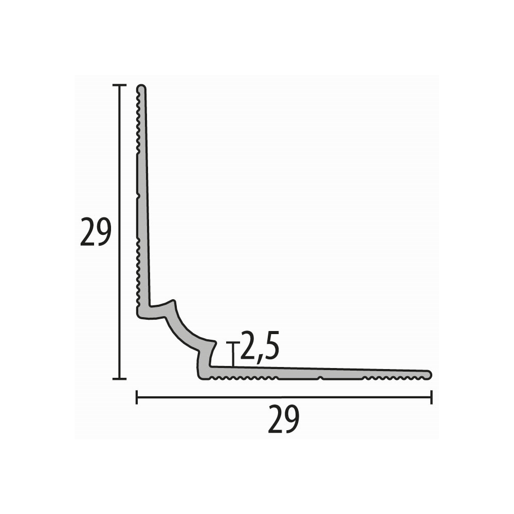 ¿Desea aumentar la durabilidad de sus escaleras y, al mismo tiempo, darles un aspecto estéticamente agradable? Nuestros perfiles de remate son la solución perfecta. Protegen sus escaleras del desgaste y reducen el riesgo de caídas, además de aportar un toque de elegancia a su hogar. Los perfiles son antideslizantes y fáciles de limpiar, lo que aumenta la seguridad y la comodidad al usar las escaleras. Nota sobre el contenido del paquete: El kit incluye todos los tornillos y tacos necesarios para una instalación sencilla. Detalles del producto: DIMENSIONES: Con unas medidas de 29 x 29 x 2500 mm y un borde de 2,5 mm de altura, los perfiles garantizan un acabado preciso y visualmente atractivo en los bordes de las escaleras. COLOR: El perfil plateado complementa cualquier diseño de interiores y presenta una estética minimalista y moderna. MATERIAL: El perfil de aluminio anodizado es extremadamente robusto y resistente al desgaste diario, los arañazos y la humedad. SUPERFICIE: Gracias a su superficie lisa, la instalación es sencilla. Bajar las escaleras es considerablemente más seguro.