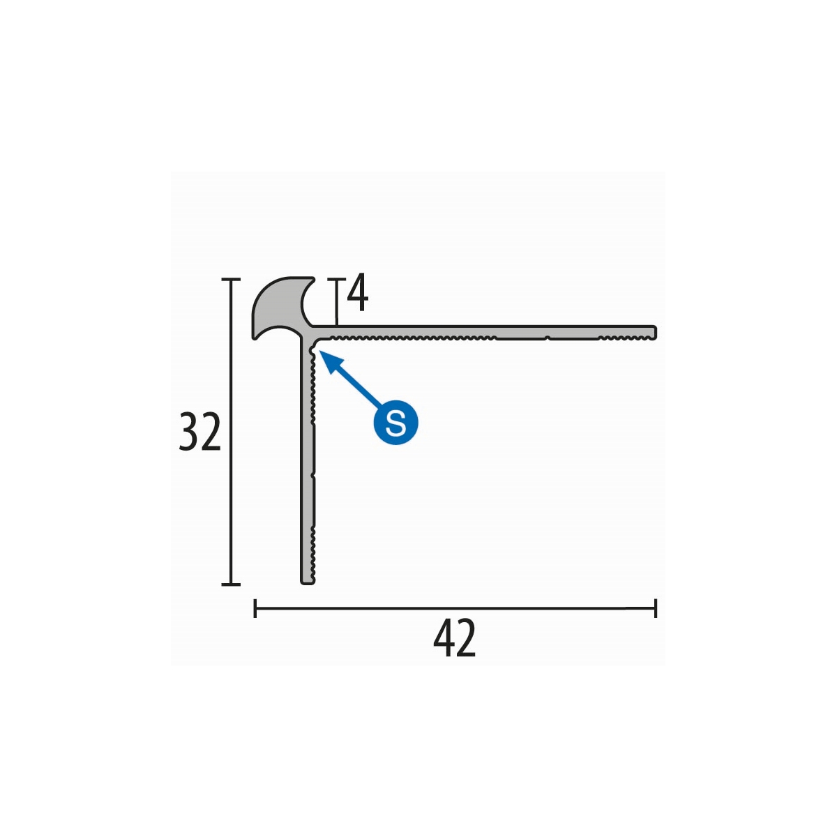 Perfil de borde de escalera 32 x 42 x 2500 mm, perfil angular de aluminio, liso, avellanado, perforado, Küberit