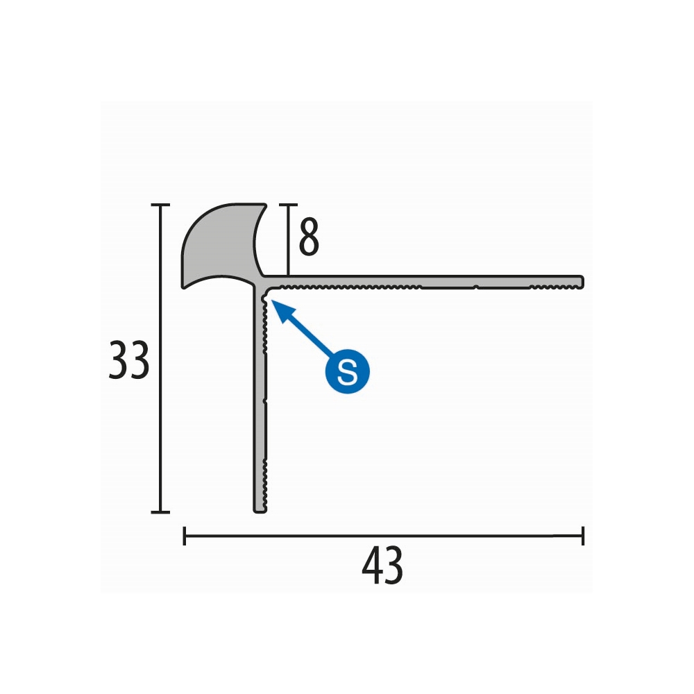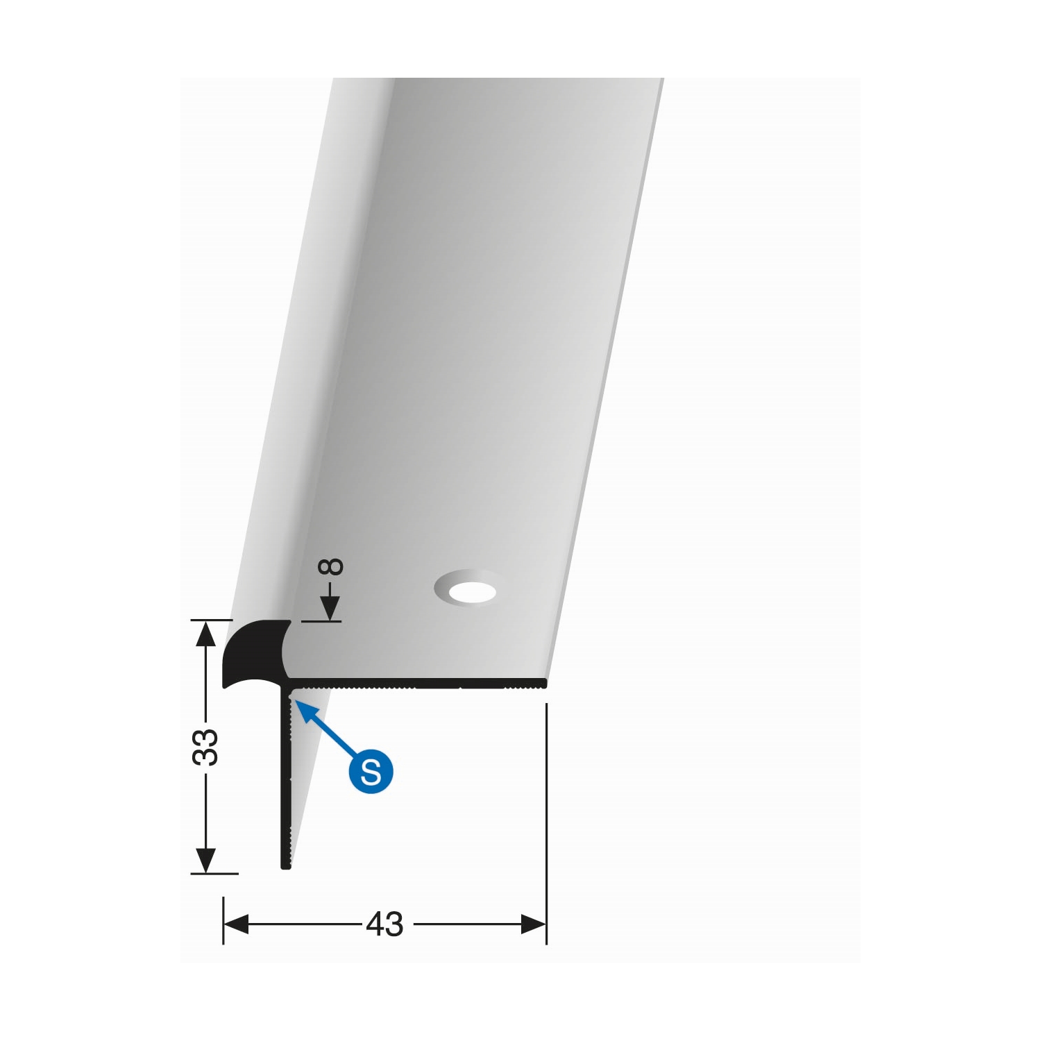 Perfil de borde de escalera 33 x 43 x 2500 mm, perfil angular de aluminio, liso, avellanado, perforado, Küberit