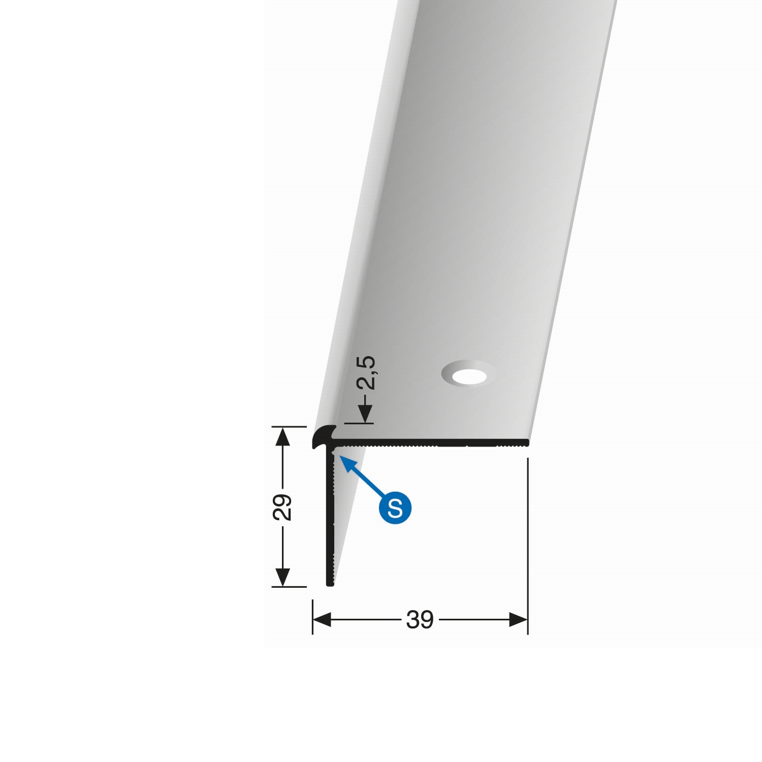 Perfil de borde de escalera de aluminio de 29 x 39 mm, perfil angular liso avellanado y perforado Küberit