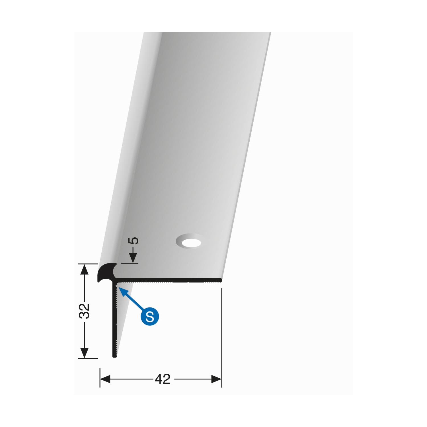 Perfil de borde de escalera de aluminio de 32 x 42 mm, perfil angular liso avellanado y perforado Küberit
