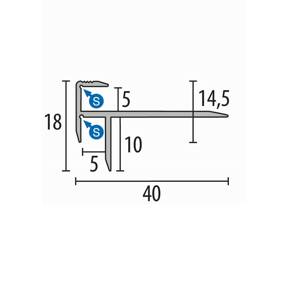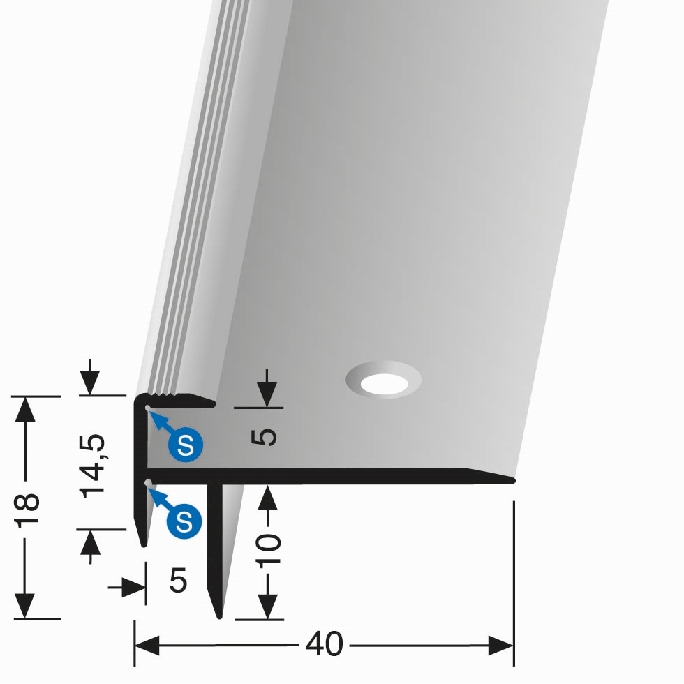 Perfil de escalera 18 x 40 x 2500 mm Perfil de borde de escalera de aluminio Perfil angular Acanalado Plata Küberit