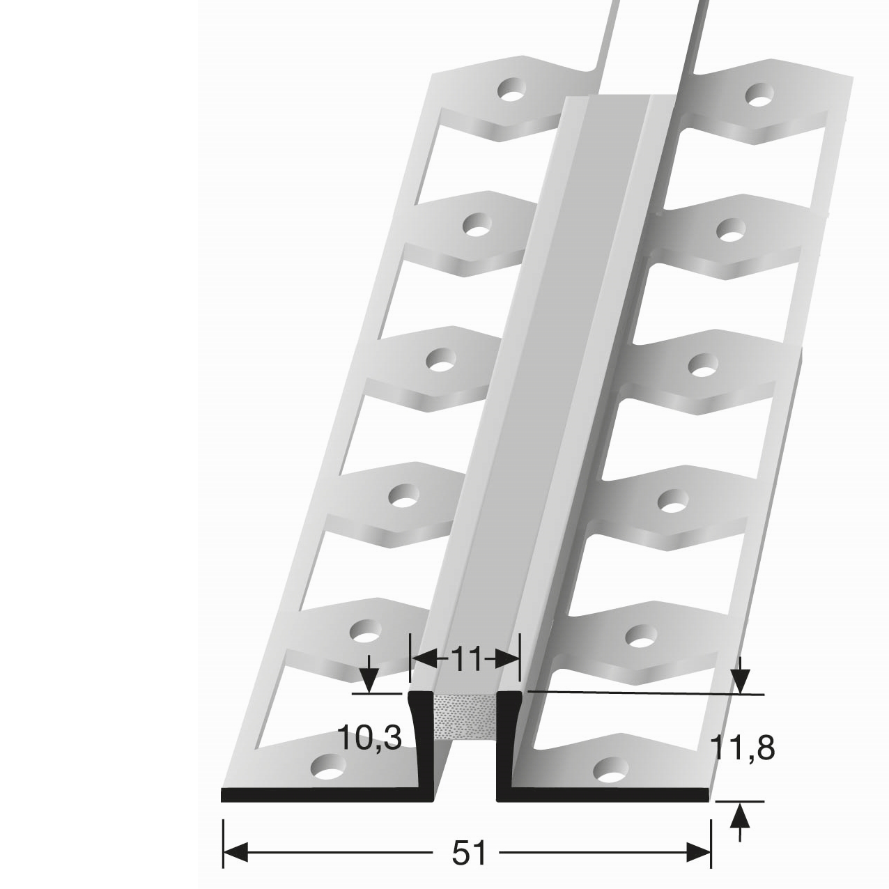 Perfil de junta de dilatación 11,8 x 51 mm, altura de borde 10,3 mm, perfil de baldosa, cerrado, perforado, Küberit