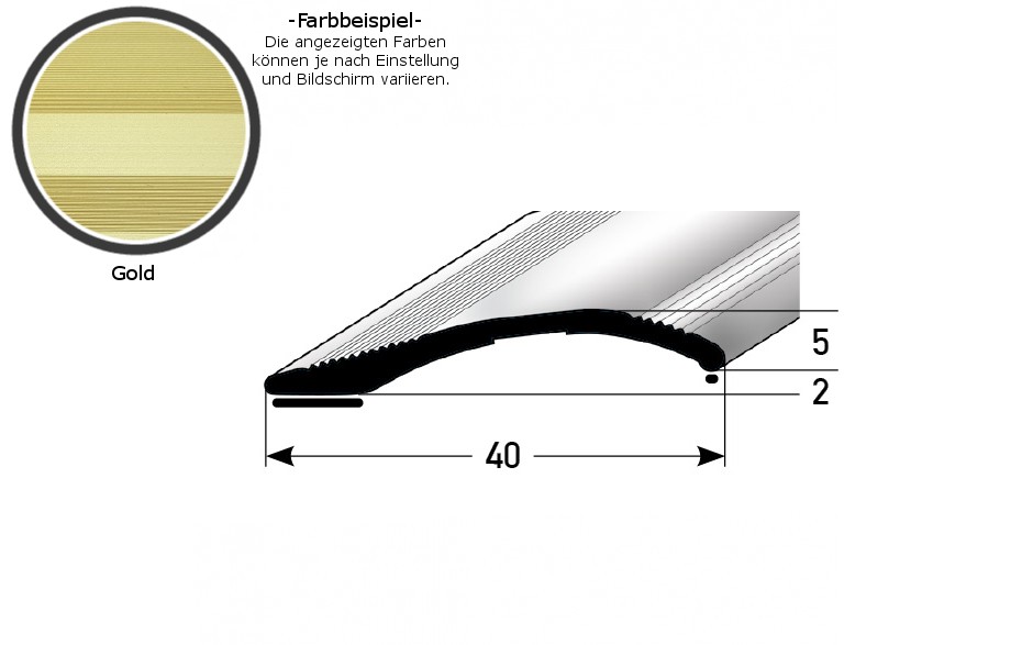 - DIMENSIONES: El perfil de nivelación, con unas dimensiones de 40 x 5 x 2700 mm, tiene una altura de borde de 2 a 16 mm.