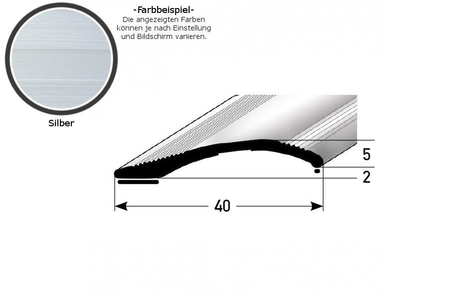 - DIMENSIONES: El perfil de nivelación, con unas dimensiones de 40 x 5 x 2700 mm, tiene una altura de borde de 2 a 16 mm.