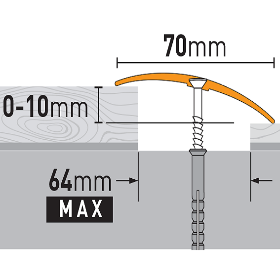 - DIMENSIONES: El perfil de transición con dimensiones 6,55 x 70 x 930 mm tiene una altura de borde de 0 a 10 mm y crea una transición limpia entre diferentes revestimientos.