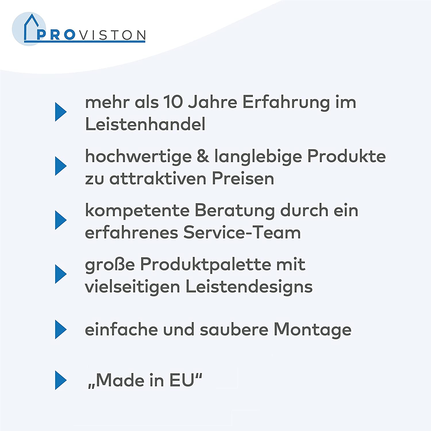 Adéntrate en el versátil mundo de productos de nuestra marca propia PROVISTON. Con una amplia selección de rodapiés, perfiles para suelos o molduras decorativas, te ofrecemos la solución perfecta para tu diseño interior individual. Ya sea clásico-elegante, moderno y minimalista o detallado y creativo, nuestras molduras PROVISTON para cada espacio, estilo y presupuesto son ideales para dar a tus estancias un toque especial.