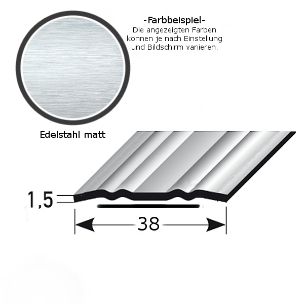 Perfil de transición Auer Deventer, altura 1,5 mm, ancho 38 mm, tira de transición de acero inoxidable
