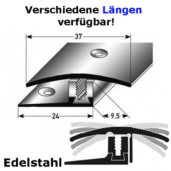 Perfil de transición Auer Perth B 37 mm, altura de borde 7-17 mm, tira de transición de acero inoxidable