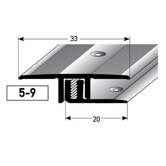 Perfil de transición PROVISTON Richmond B, altura de borde de 33 mm, tira de transición de 5-9 mm, aluminio anodizado
