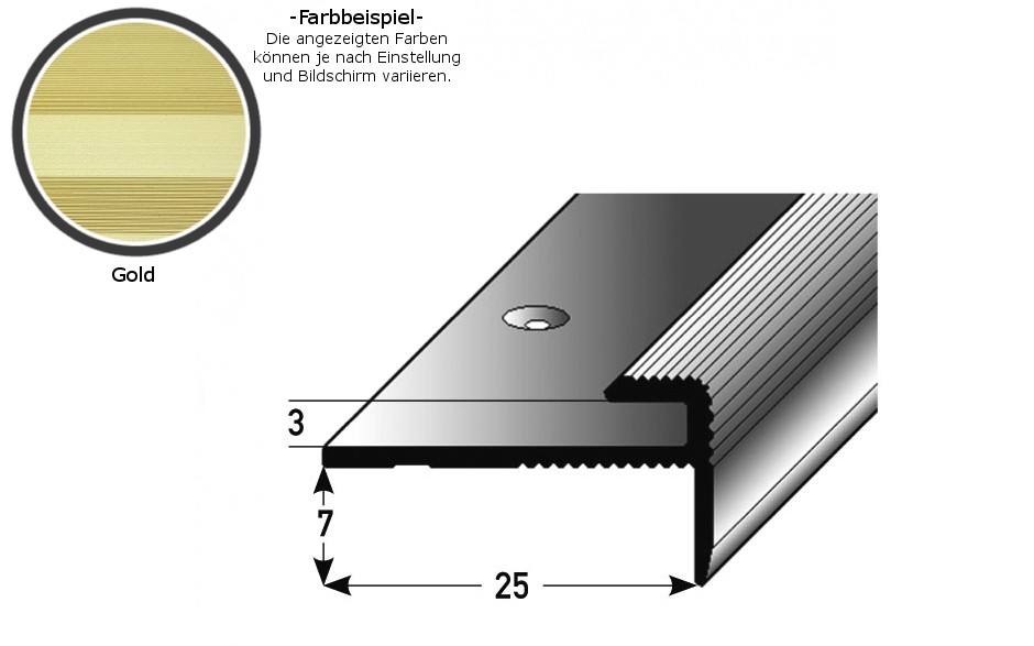 - MATERIAL: Fabricado en aluminio de alta calidad, que se caracteriza por su robustez y durabilidad. Resistente al desgaste, los arañazos y la humedad, lo que lo hace ideal para zonas de alto tránsito. SUPERFICIE: El perfil de canto tiene una textura superficial acanalada. COLOR: Dorado. Gracias a su aspecto sencillo y moderno, este color armoniza con cualquier estilo de decoración. DISEÑO DE PERFIL: Sencillo, versátil y moderno. Este perfil de suelo es atemporal y un verdadero atractivo en cualquier estancia. APLICACIÓN: Los perfiles de borde protegen los cantos del suelo de posibles daños y aportan un acabado limpio y profesional. CONTENIDO DEL PAQUETE: Se incluyen los tornillos y tacos necesarios. INSTALACIÓN SENCILLA: La instalación de nuestros perfiles de borde es rápida y sencilla. No se requieren herramientas especiales ni técnicas de bricolaje complicadas. Los perfiles metálicos se pueden fijar fácilmente atornillando o pegando. Asegúrese de que la superficie esté nivelada y sea resistente. Para los perfiles autoadhesivos, la superficie debe estar seca, libre de polvo y grasa para lograr una adhesión óptima. En zonas de mucho tránsito, se recomienda atornillar y pegar el perfil. Para aumentar la capacidad de carga, recomendamos rellenar la cavidad entre el perfil metálico y el revestimiento del suelo con un material adherido. Aquí encontrará nuestras instrucciones de instalación para perfiles de suelo.