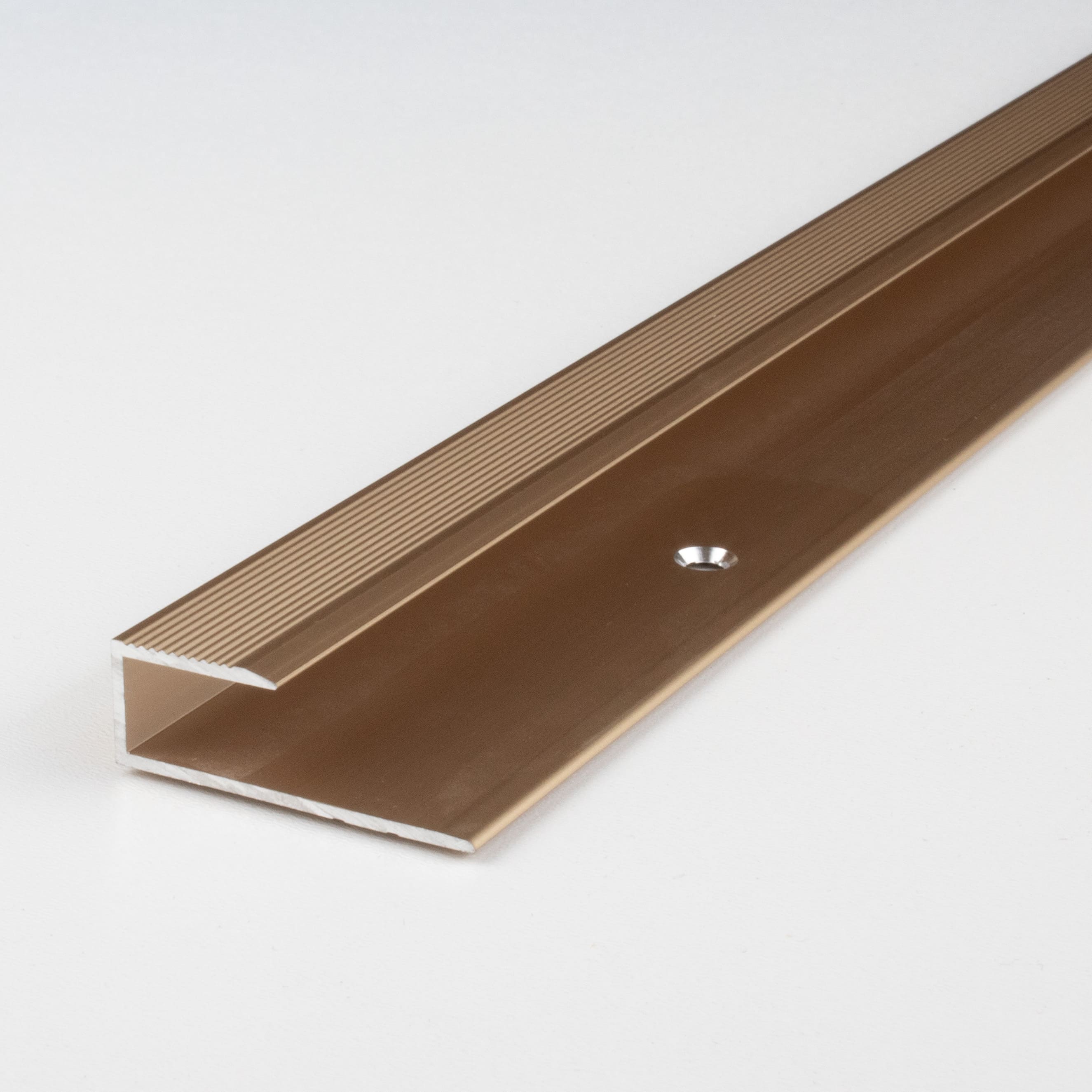 - MATERIAL: Fabricado en aluminio de alta calidad, que se caracteriza por su robustez y durabilidad. Resistente al desgaste, los arañazos y la humedad, lo que lo hace ideal para zonas de alto tránsito. SUPERFICIE: El perfil de canto tiene una textura superficial acanalada. COLOR: Bronce claro. Gracias a su aspecto sencillo y moderno, este color armoniza con cualquier estilo de decoración. DISEÑO DE PERFIL: Sencillo, versátil y moderno. Este perfil de suelo es atemporal y un verdadero atractivo en cualquier estancia. APLICACIÓN: Los perfiles de borde protegen los cantos del suelo de posibles daños y aportan un acabado limpio y profesional. CONTENIDO DEL PAQUETE: Se incluyen los tornillos y tacos necesarios. INSTALACIÓN SENCILLA: La instalación de nuestros perfiles de borde es rápida y sencilla. No se requieren herramientas especiales ni técnicas de bricolaje complicadas. Los perfiles metálicos se pueden fijar fácilmente atornillando o pegando. Asegúrese de que la superficie esté nivelada y sea resistente. Para los perfiles autoadhesivos, la superficie debe estar seca, libre de polvo y grasa para lograr una adhesión óptima. En zonas de mucho tránsito, se recomienda atornillar y pegar el perfil. Para aumentar la capacidad de carga, recomendamos rellenar la cavidad entre el perfil metálico y el revestimiento del suelo con un material adherido. Aquí encontrará nuestras instrucciones de instalación para perfiles de suelo.
