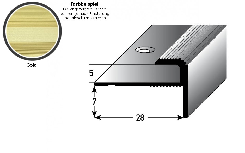 Perfil final PROVISTON, altura 12 mm, ancho 28 mm, altura del borde 5 mm, perfil de borde de aluminio