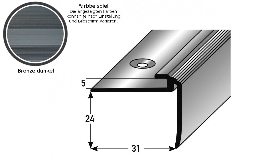 - MATERIAL: Fabricado en aluminio de alta calidad, que se caracteriza por su robustez y durabilidad. Resistente al desgaste, los arañazos y la humedad, lo que lo hace ideal para zonas de alto tránsito. SUPERFICIE: El perfil de canto tiene una textura superficial acanalada. COLOR: Bronce oscuro. Gracias a su aspecto sencillo y moderno, este color armoniza con cualquier estilo de decoración. DISEÑO DE PERFIL: Sencillo, versátil y moderno. Este perfil de suelo es atemporal y un verdadero atractivo en cualquier estancia. APLICACIÓN: Los perfiles de borde protegen los cantos del suelo de posibles daños y aportan un acabado limpio y profesional. CONTENIDO DEL PAQUETE: Se incluyen los tornillos y tacos necesarios. INSTALACIÓN SENCILLA: La instalación de nuestros perfiles de borde es rápida y sencilla. No se requieren herramientas especiales ni técnicas de bricolaje complicadas. Los perfiles metálicos se pueden fijar fácilmente atornillando o pegando. Asegúrese de que la superficie esté nivelada y sea resistente. Para los perfiles autoadhesivos, la superficie debe estar seca, libre de polvo y grasa para lograr una adhesión óptima. En zonas de mucho tránsito, se recomienda atornillar y pegar el perfil. Para aumentar la capacidad de carga, recomendamos rellenar la cavidad entre el perfil metálico y el revestimiento del suelo con un material adherido. Aquí encontrará nuestras instrucciones de instalación para perfiles de suelo.