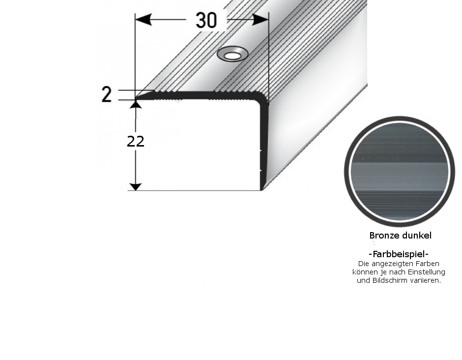 Perfiles angulares y de canto para escaleras, ancho 30 mm, altura 22-52 mm, espesor del material: 2 mm, PROVISTON