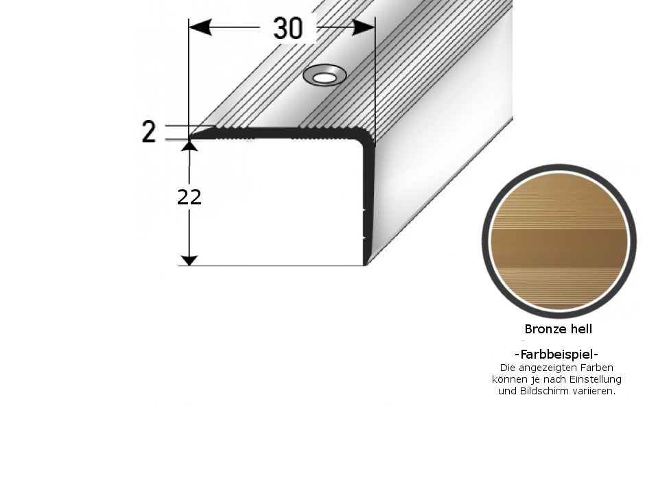 Perfiles angulares y de canto para escaleras, ancho 30 mm, altura 22-52 mm, espesor del material: 2 mm, PROVISTON