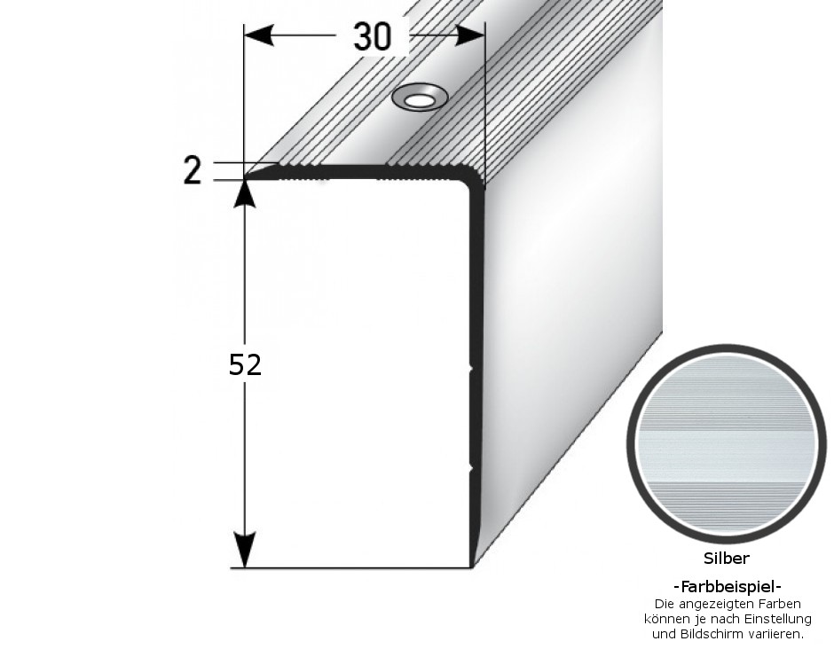 Perfiles angulares y de canto para escaleras, ancho 30 mm, altura 22-52 mm, espesor del material: 2 mm, PROVISTON