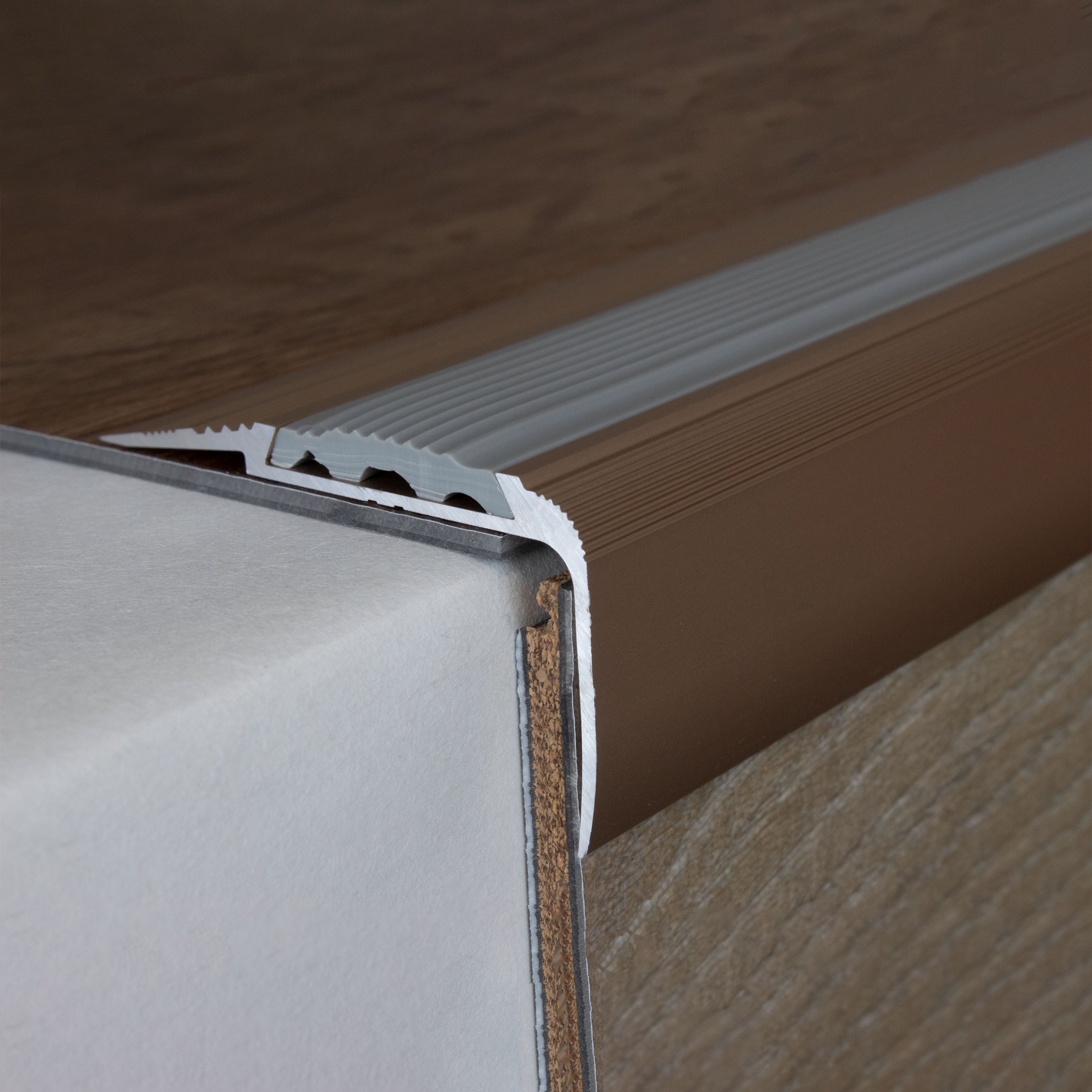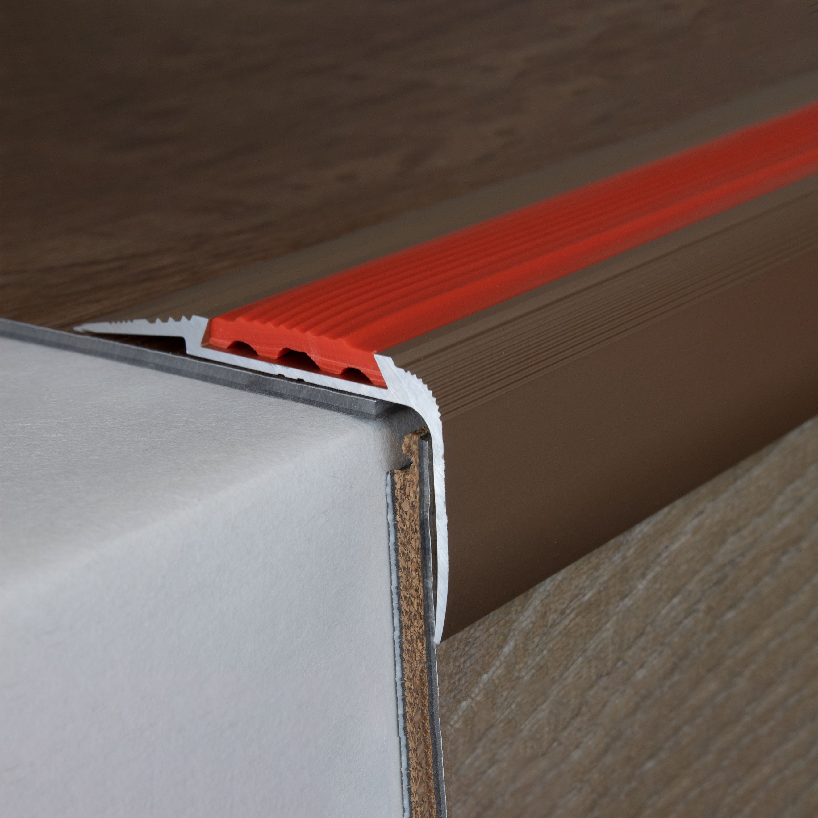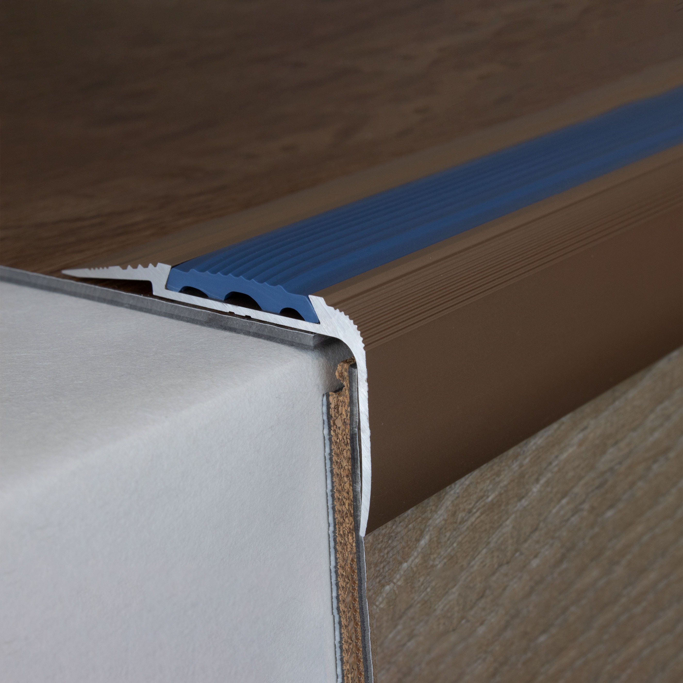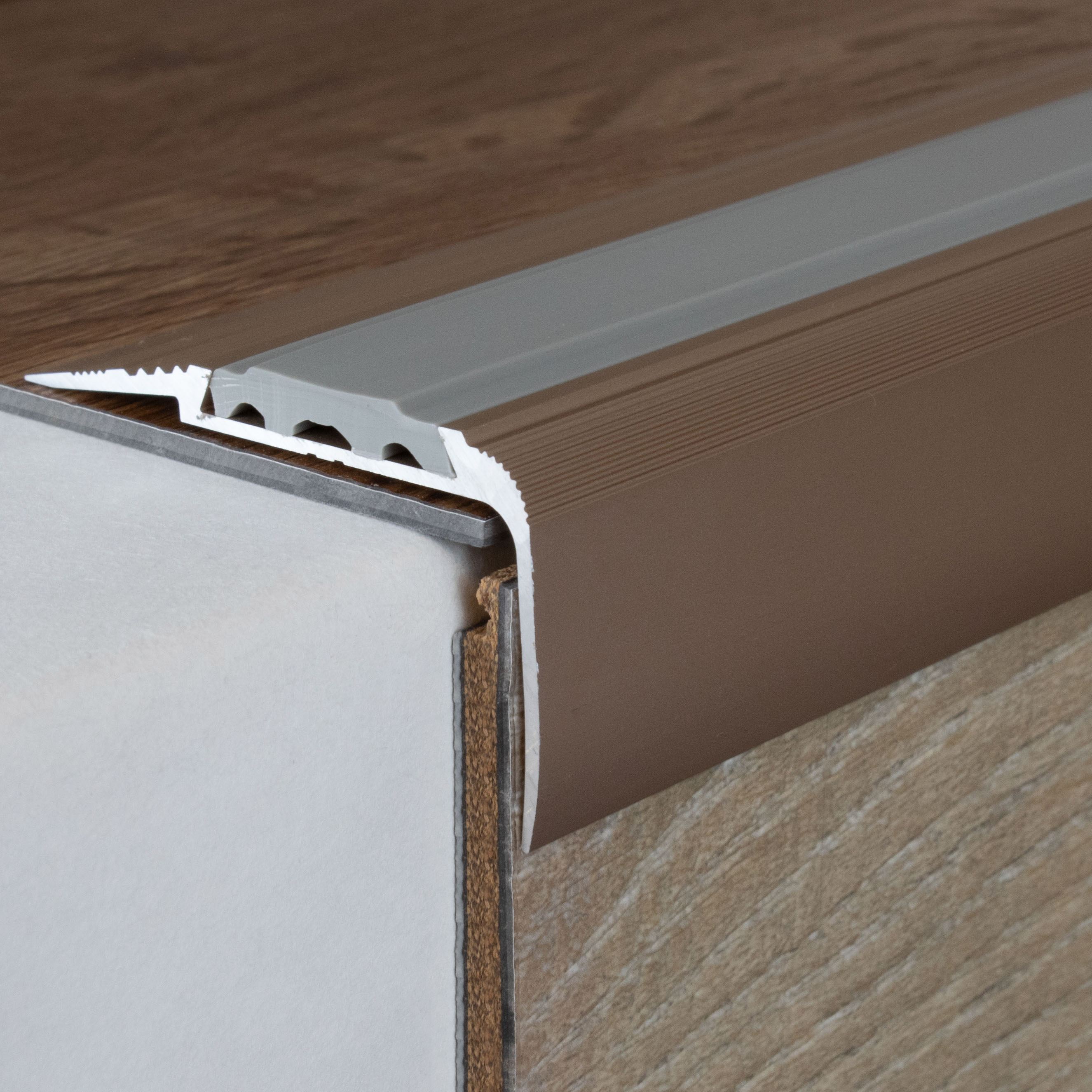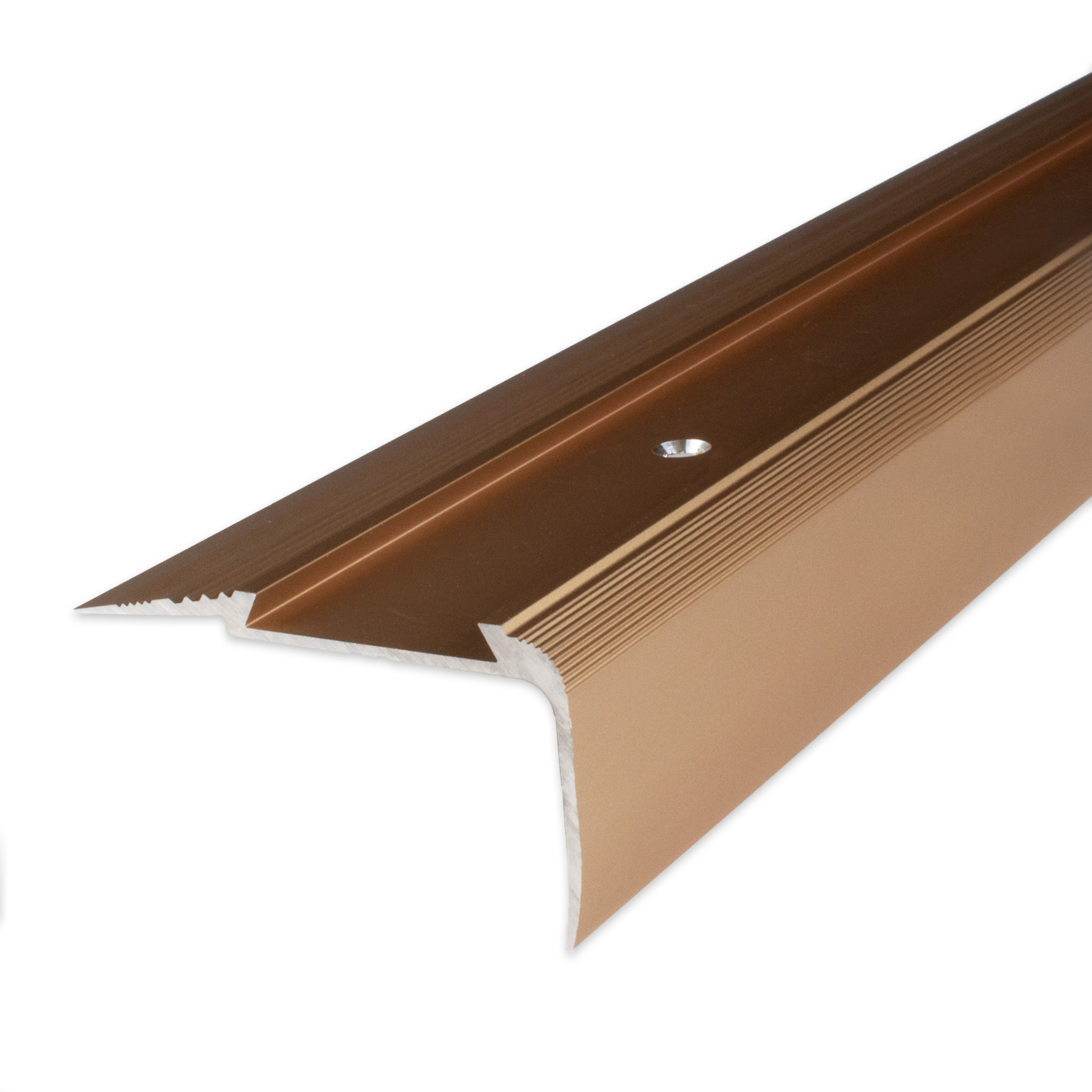 - COLOR: Bronce claro. Gracias a su aspecto sencillo y moderno, este color armoniza con cualquier estilo de interiorismo, independientemente de si los suelos son oscuros o claros, o si las paredes son blancas o de colores. PROTECCIÓN CONTRA EL DESGASTE: Los perfiles de cantonera ofrecen una protección eficaz para los bordes de las escaleras. Evitan marcas de desgaste y arañazos que pueden producirse por el uso habitual. APLICACIONES: Nuestros perfiles de esquina son aptos no solo para viviendas, sino también para edificios públicos, locales comerciales y complejos de oficinas. Se pueden utilizar en escalones de madera, hormigón o baldosas y se integran perfectamente en cualquier ambiente. Importante: Los perfiles de cantonera adhesivos no son aptos para edificios públicos. Para zonas de alto tránsito, recomendamos perfiles angulares de acero inoxidable.