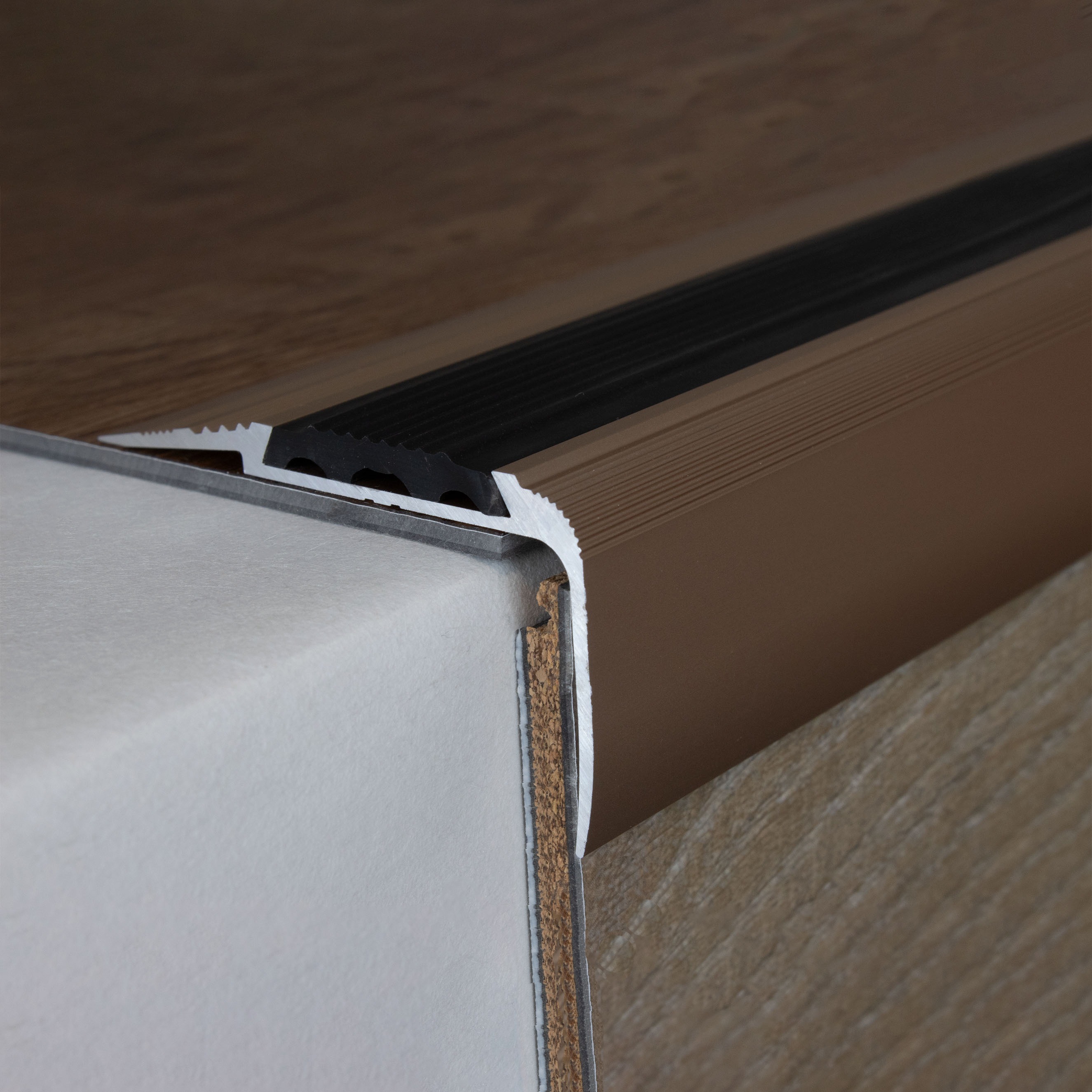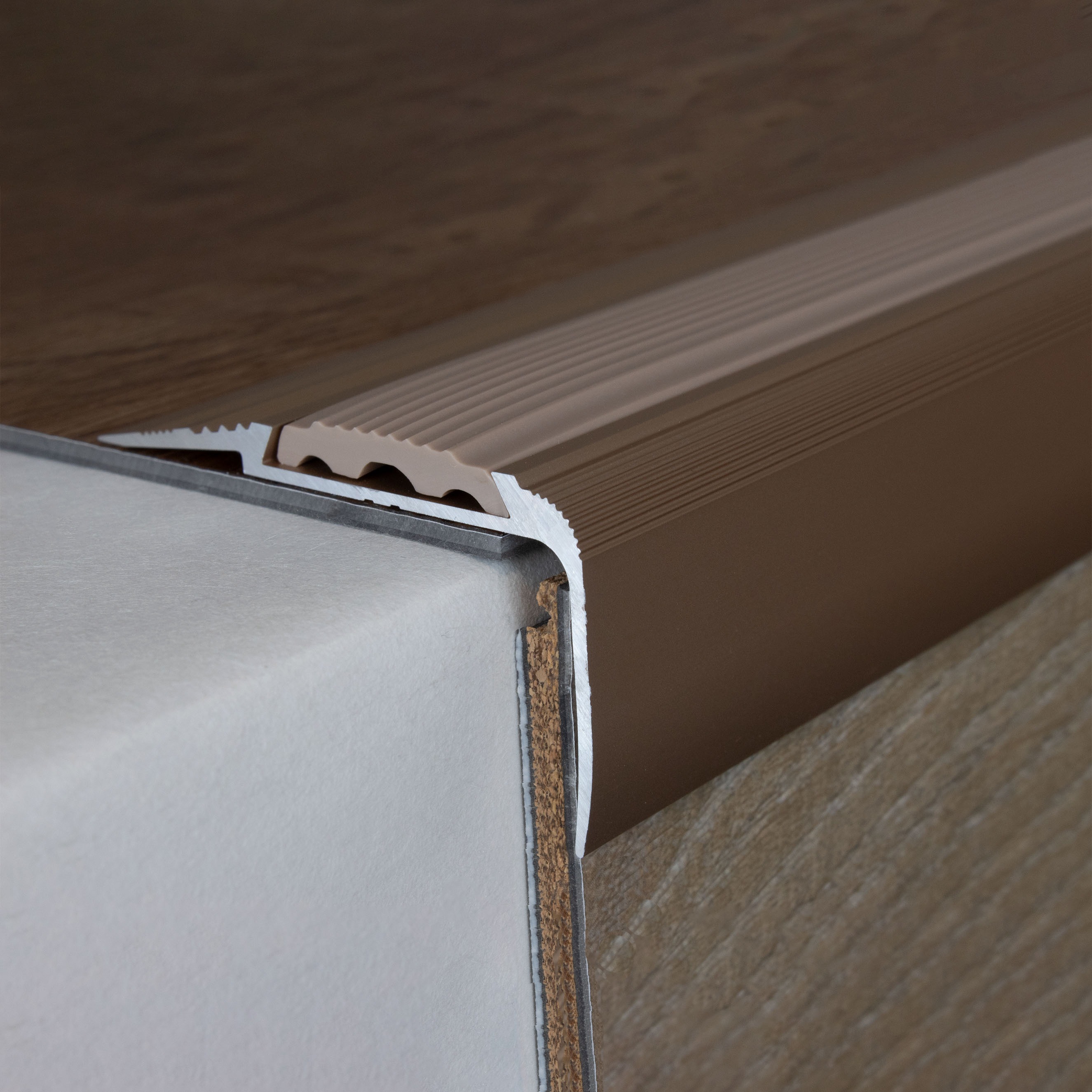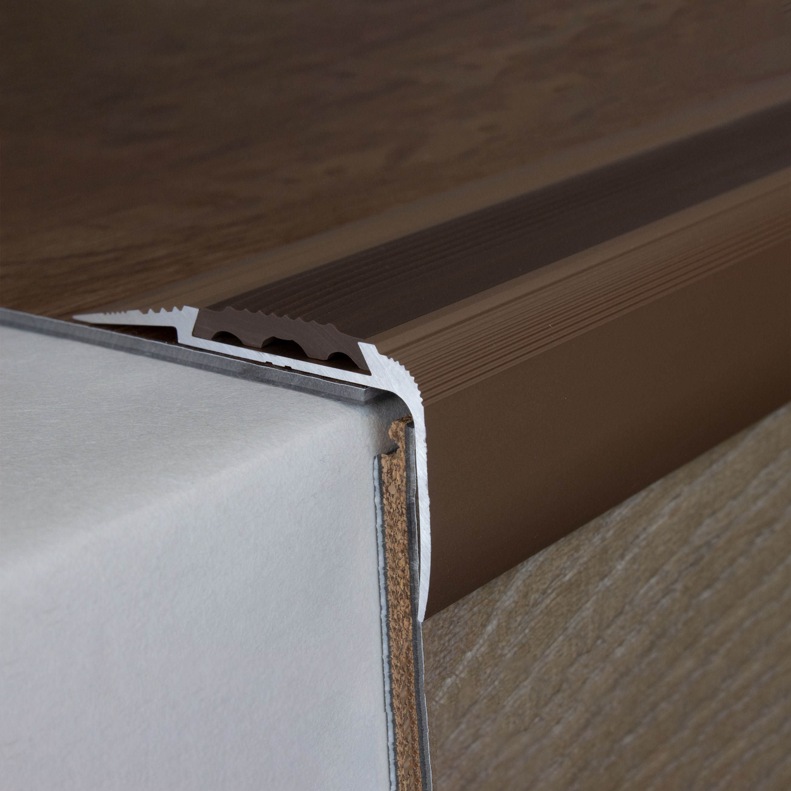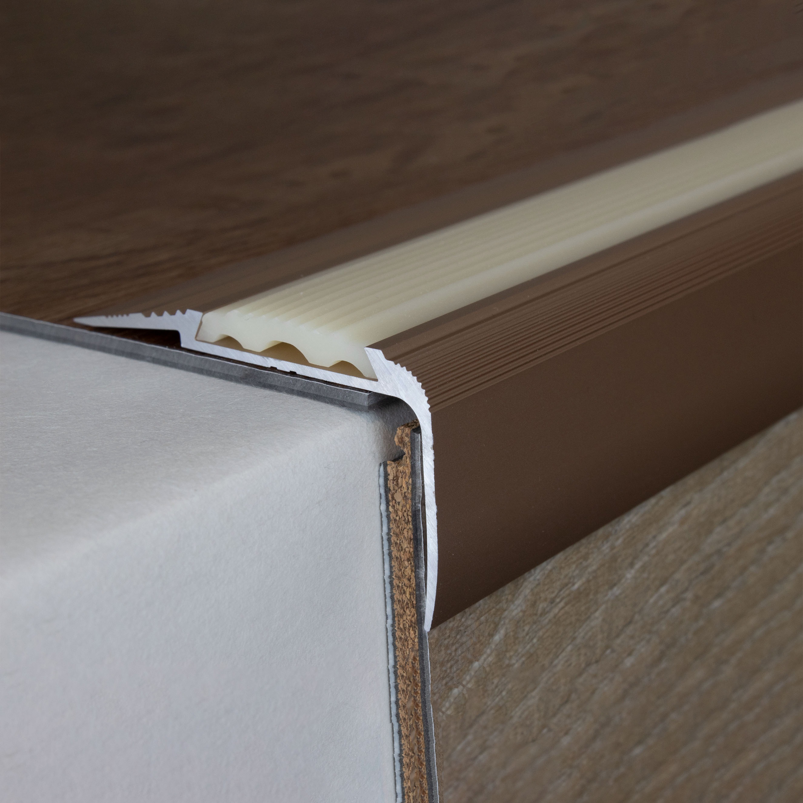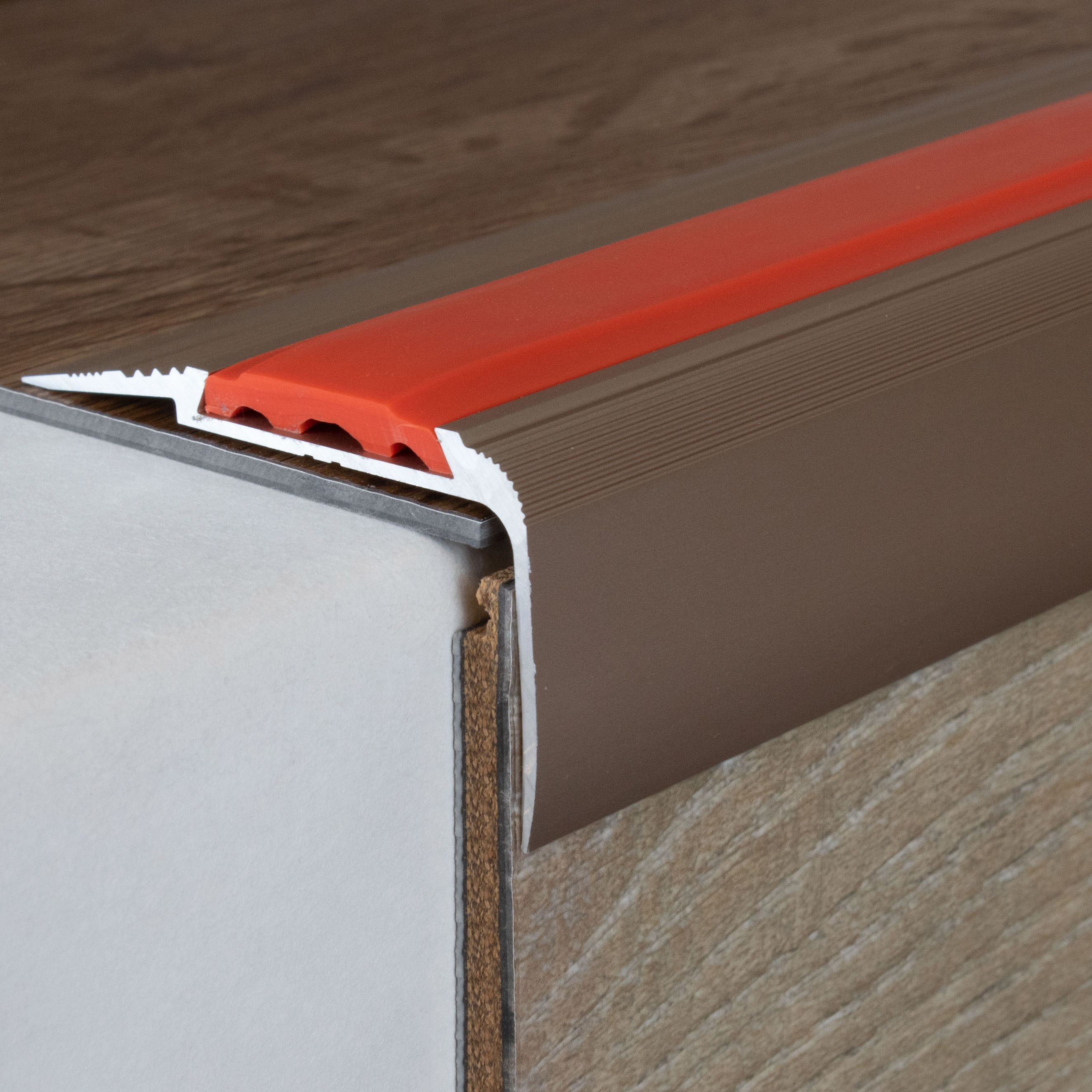 - COLOR: Bronce claro. Gracias a su aspecto sencillo y moderno, este color armoniza con cualquier estilo de interiorismo, independientemente de si los suelos son oscuros o claros, o si las paredes son blancas o de colores. PROTECCIÓN CONTRA EL DESGASTE: Los perfiles de cantonera ofrecen una protección eficaz para los bordes de las escaleras. Evitan marcas de desgaste y arañazos que pueden producirse por el uso habitual. APLICACIONES: Nuestros perfiles de esquina son aptos no solo para viviendas, sino también para edificios públicos, locales comerciales y complejos de oficinas. Se pueden utilizar en escalones de madera, hormigón o baldosas y se integran perfectamente en cualquier ambiente. Importante: Los perfiles de cantonera adhesivos no son aptos para edificios públicos. Para zonas de alto tránsito, recomendamos perfiles angulares de acero inoxidable.
