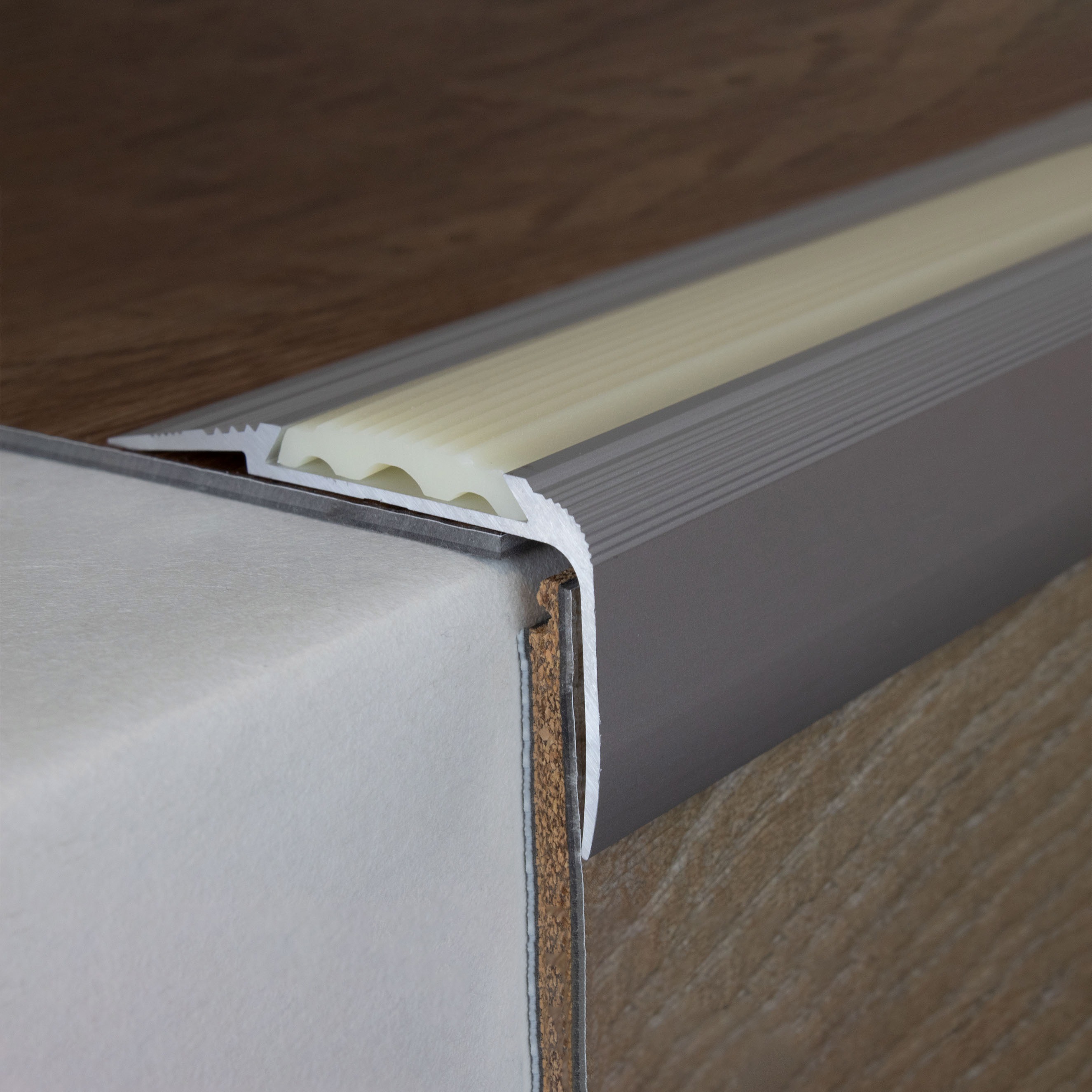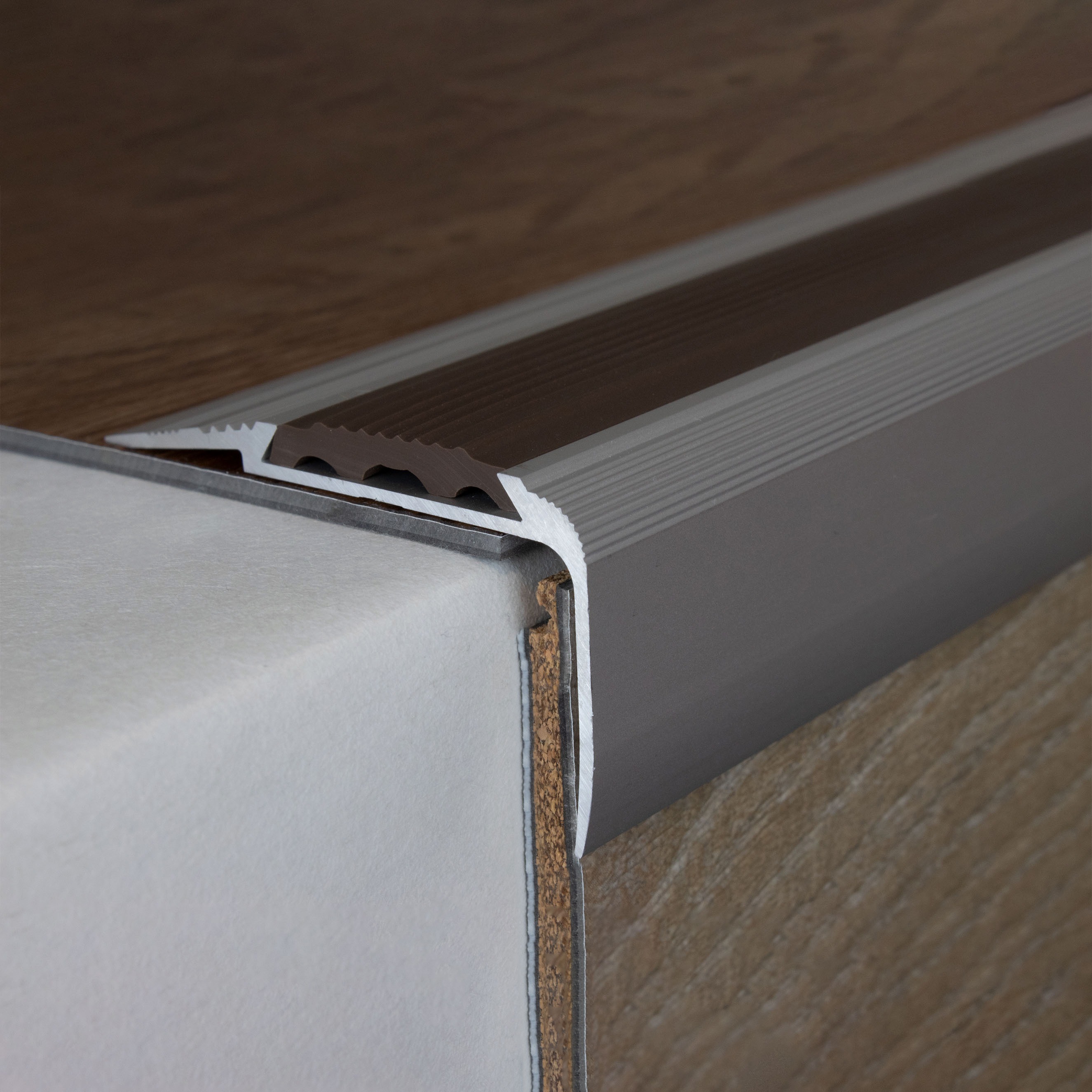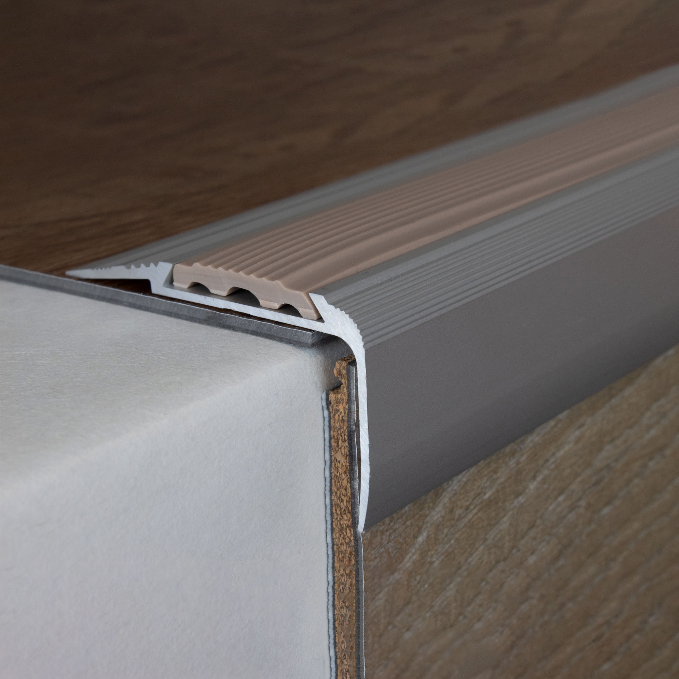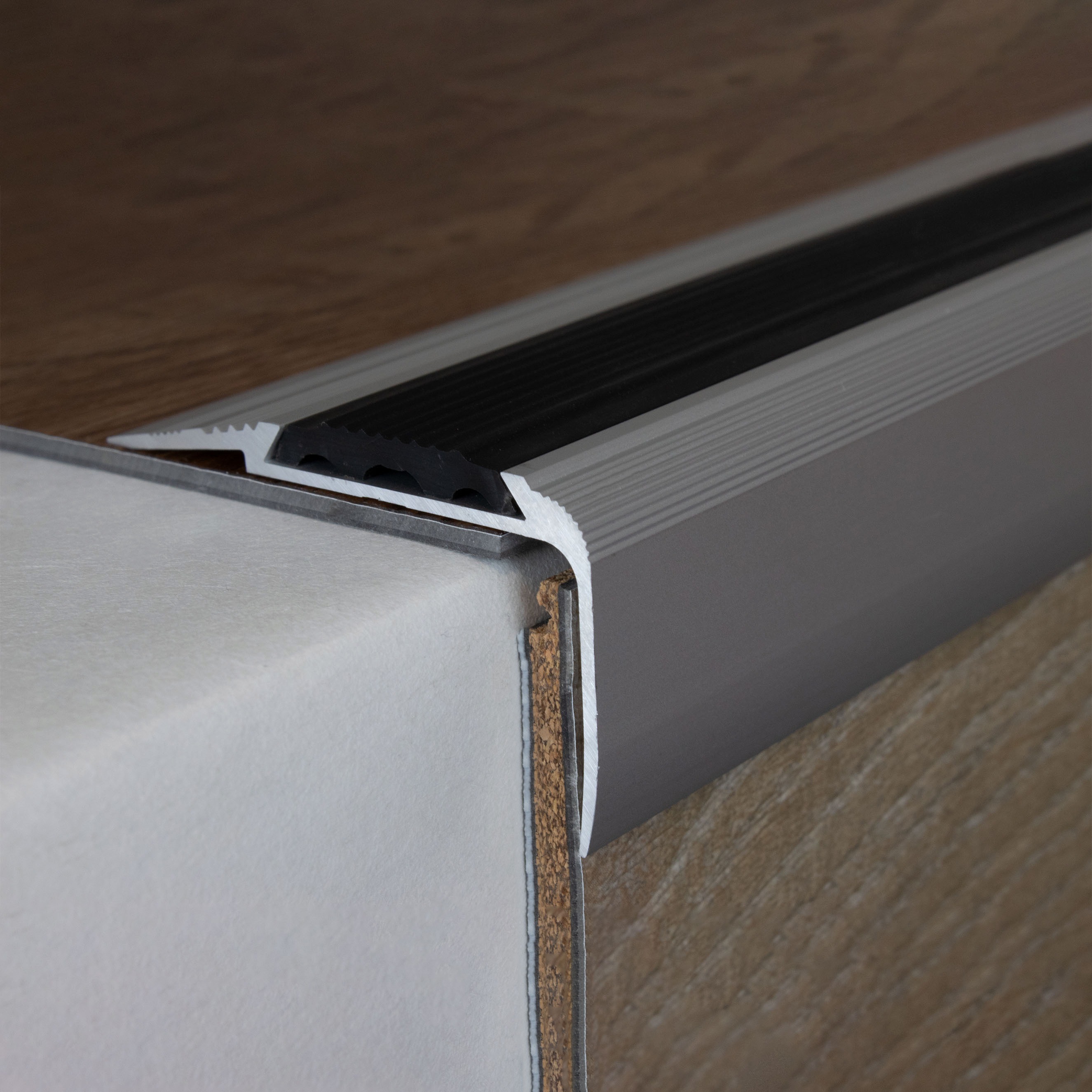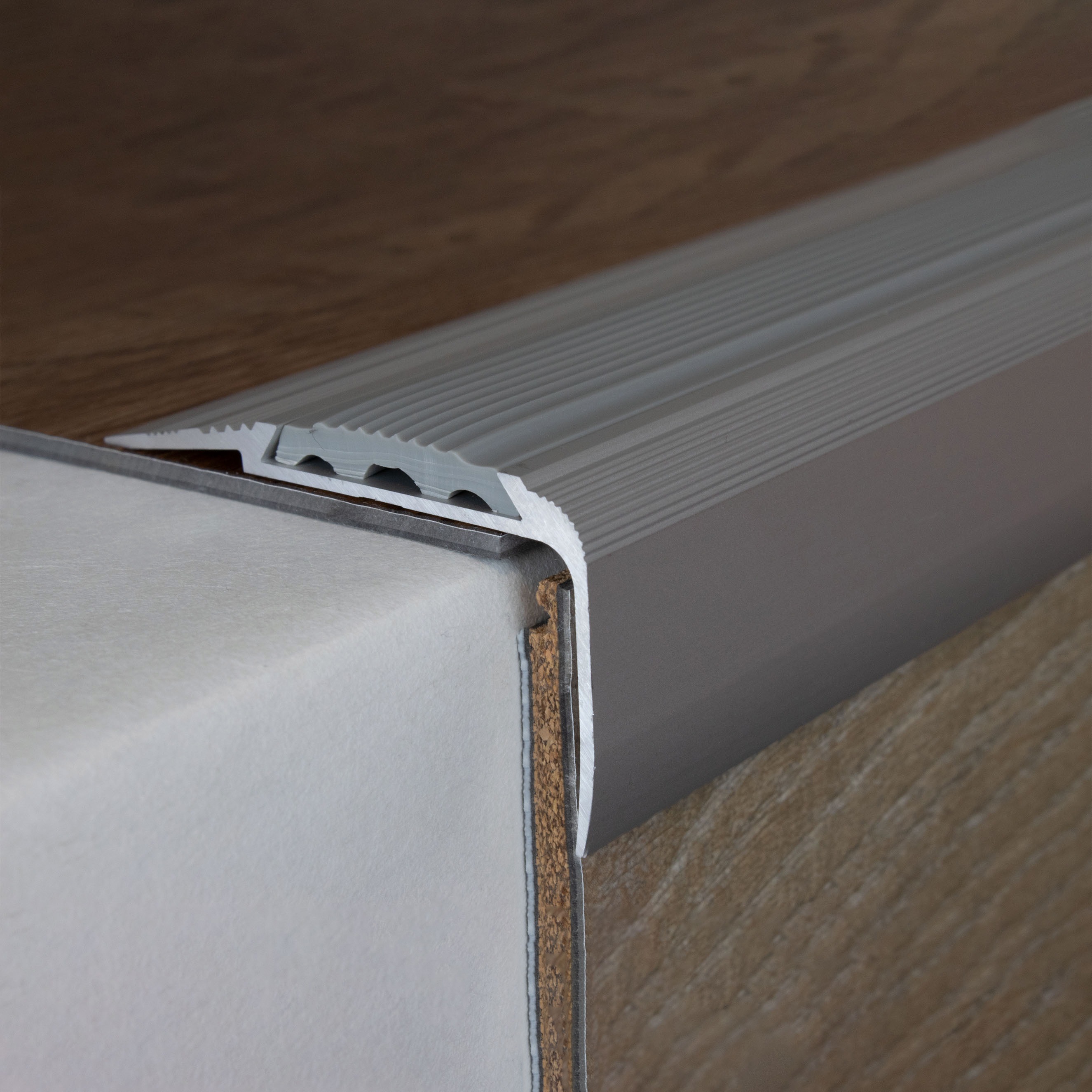 Si se desea una mayor capacidad de carga, recomendamos rellenar el espacio entre el perfil metálico y el revestimiento del suelo con un sellador a presión. Aquí encontrará nuestras instrucciones de instalación para perfiles metálicos. Nota sobre el contenido del envío: Los perfiles de remate de escalera se suministran SIN insertos. Puede solicitar los insertos de PVC correspondientes en la pestaña "Accesorios".Ficha técnica
